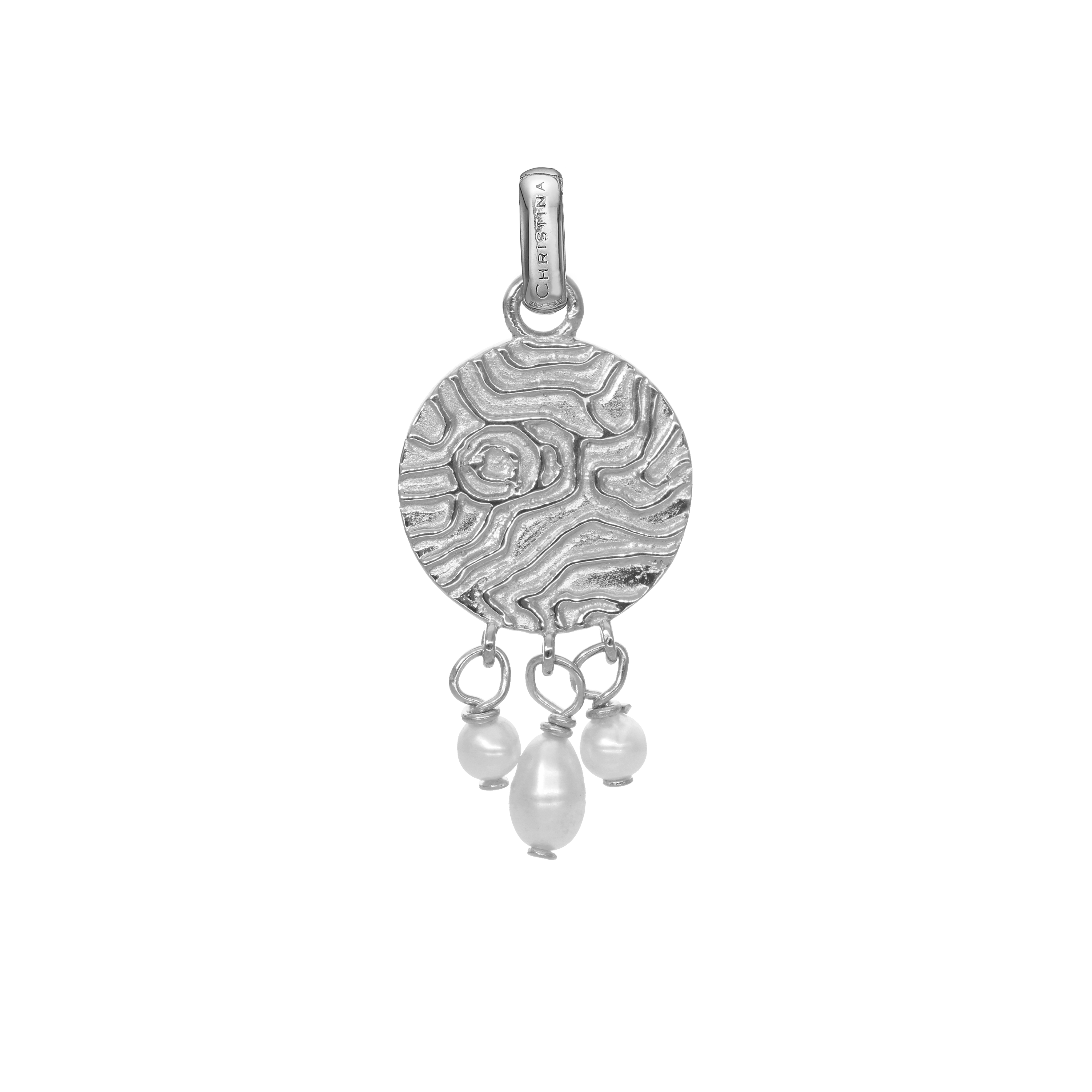 Dazzling imprint Earring Pendant - Polished Sterling Silver with 3 white Freshwater pearls