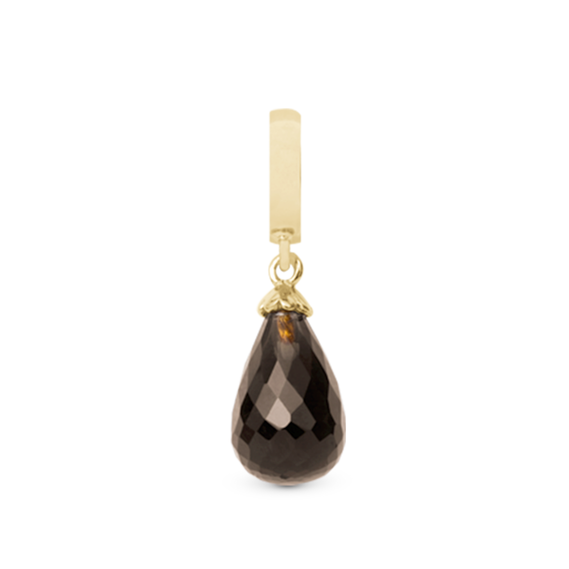 Smokey Quartz Drop Earring Charm 6 mm for Bracelet - Polished Gold Plated Sterling Silver with 1 Krystalkvarts610-G01Smokey