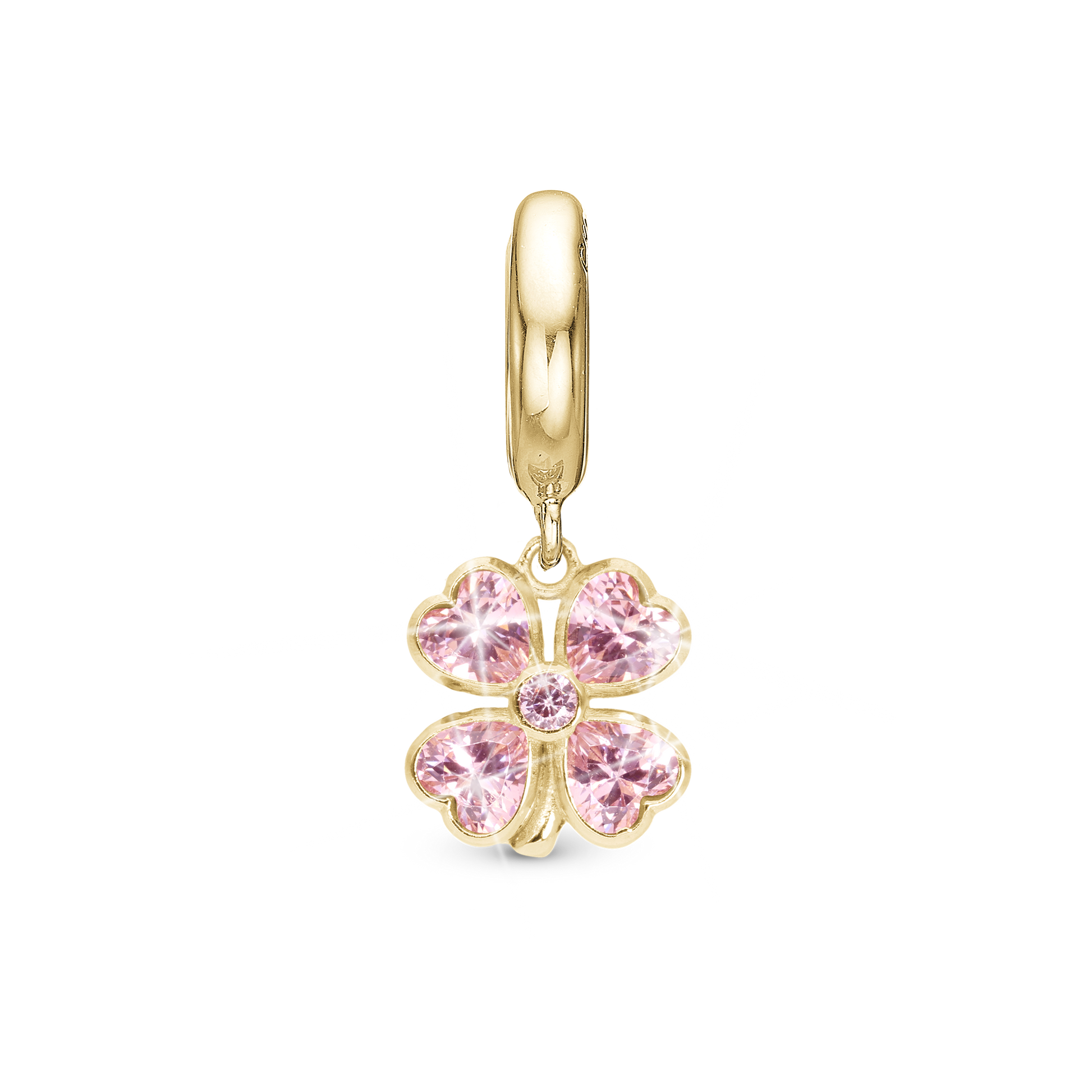 Pink Heart Clover Drop Earring Charm 6 mm for Bracelet - Polished Gold Plated Sterling Silver with 5 Pinke Cubic Zirkonia610-G135
