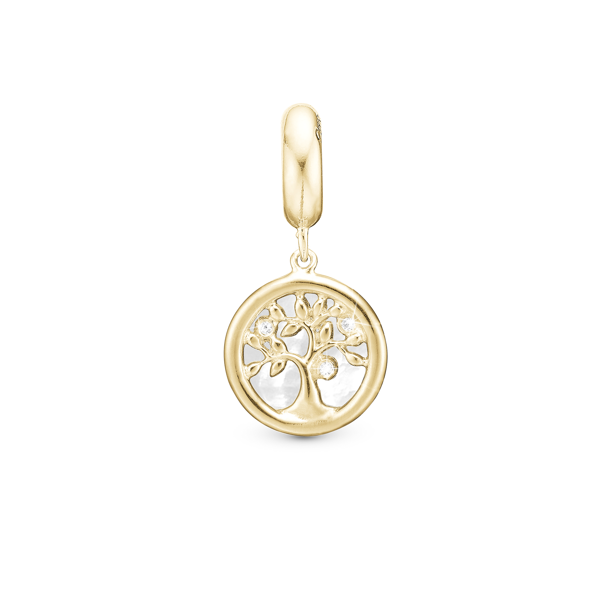 Tree of Life perlemor - Drop Earring Charm 4 mm for Bracelet - Polished Gold Plated Sterling Silver with 3