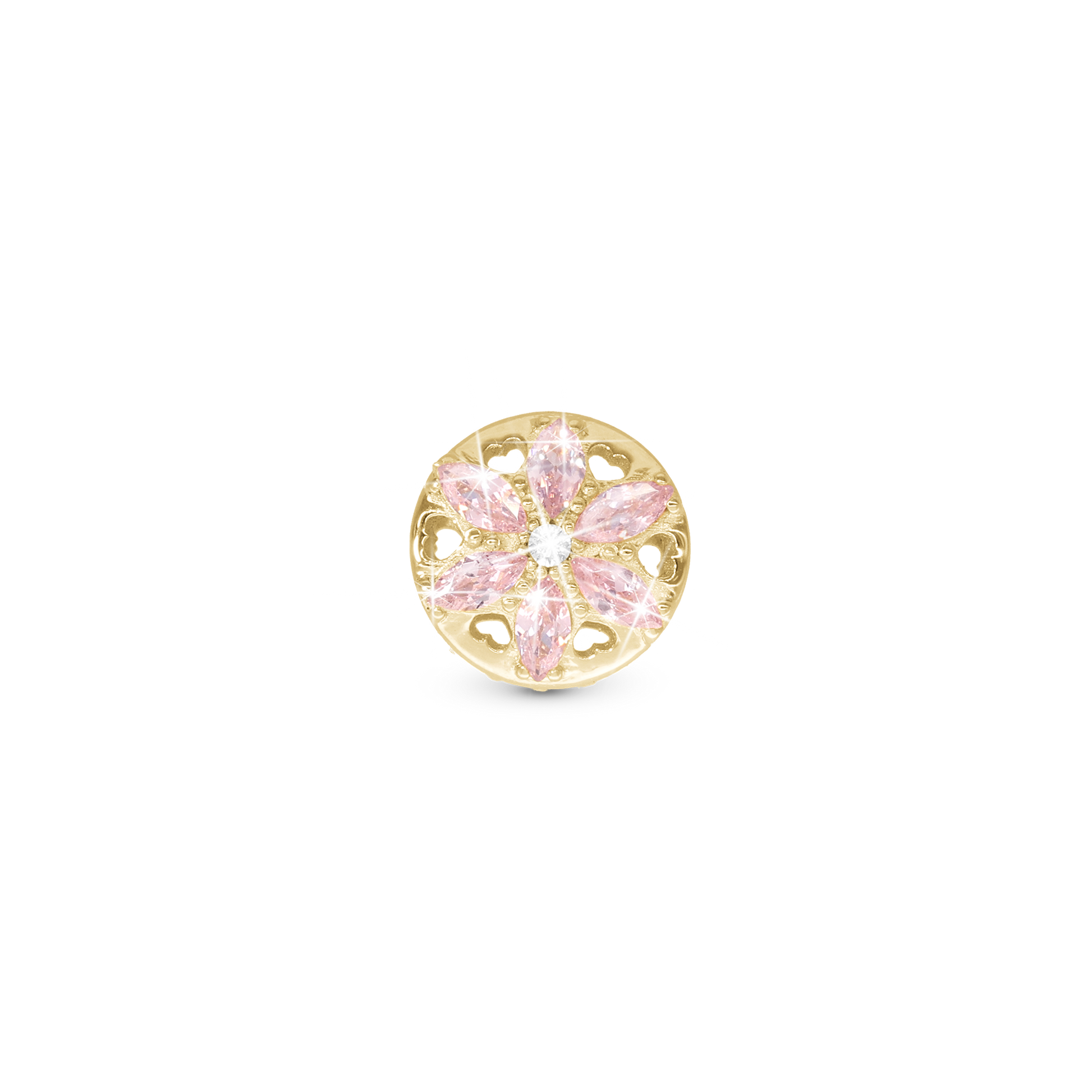 Sparkling pink flower - Charm 4 mm with Bracelet - Polished Gold-Plated Sterling Silver with Cubic Zirconia