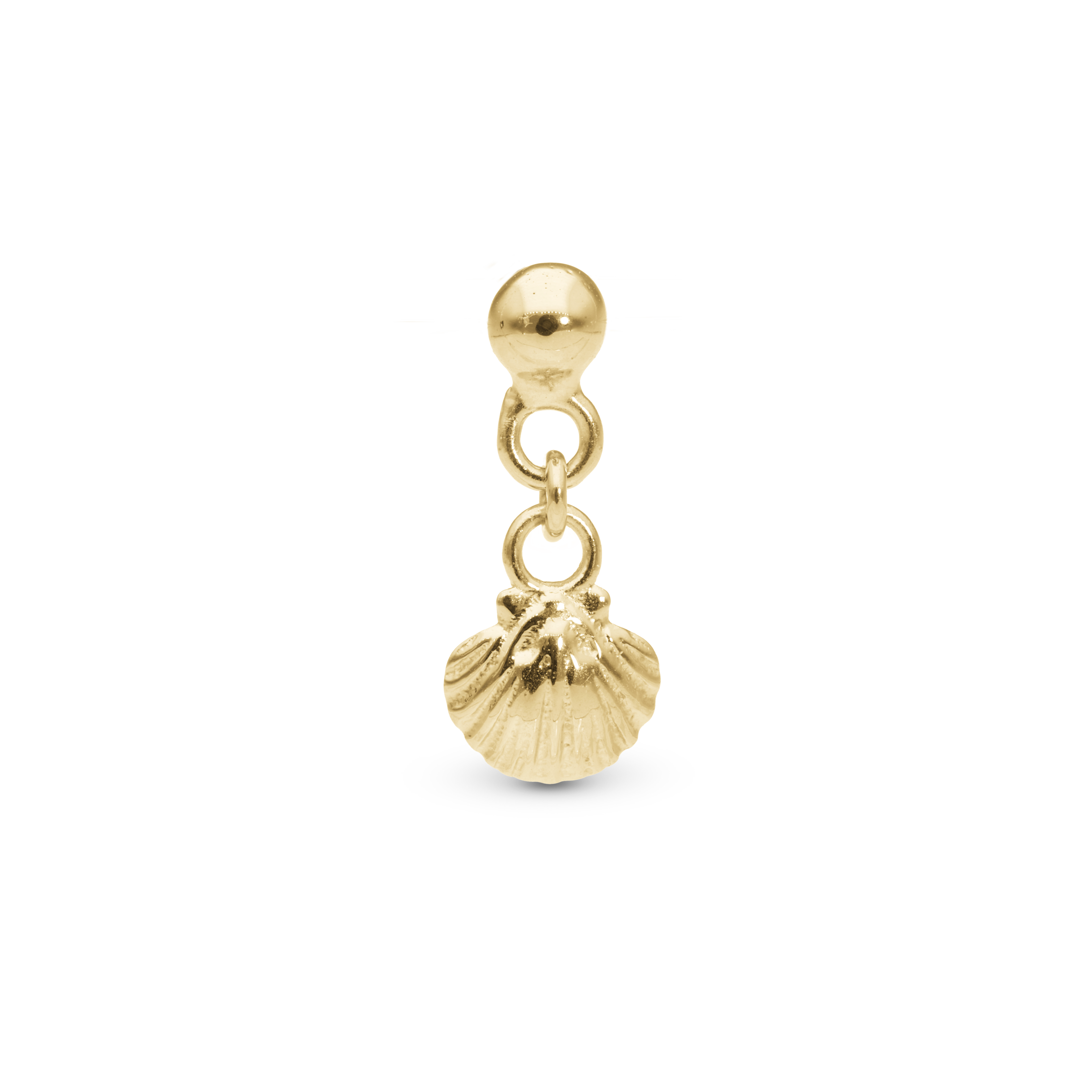 Dangling Clam shell Simple Earring Stud / Single Stud - Polished Gold Plated Sterling Silver