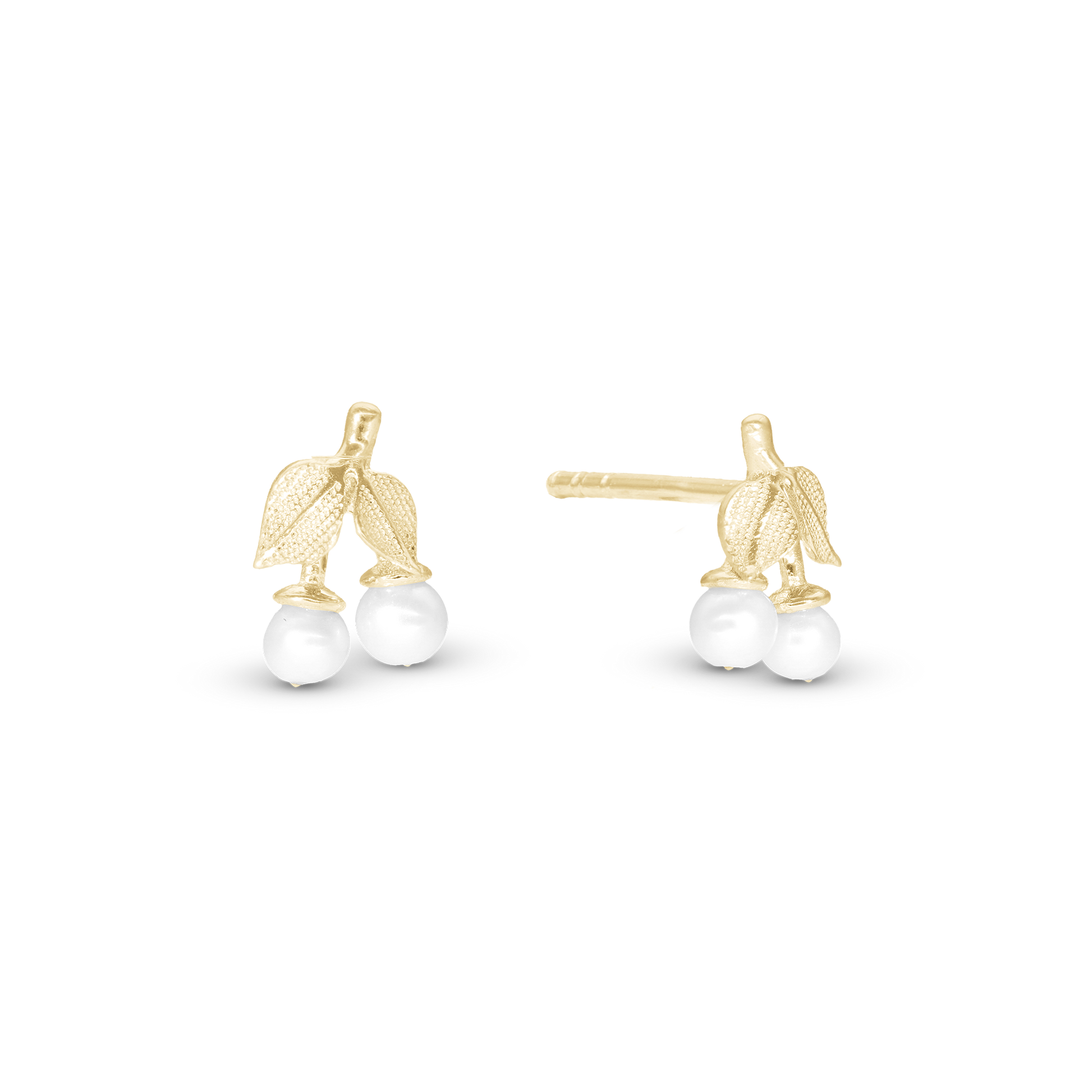 Pearl Cherries Stud Earrings - Satin Gold Plated Sterling Silver with 4 white Ferskvandsperler