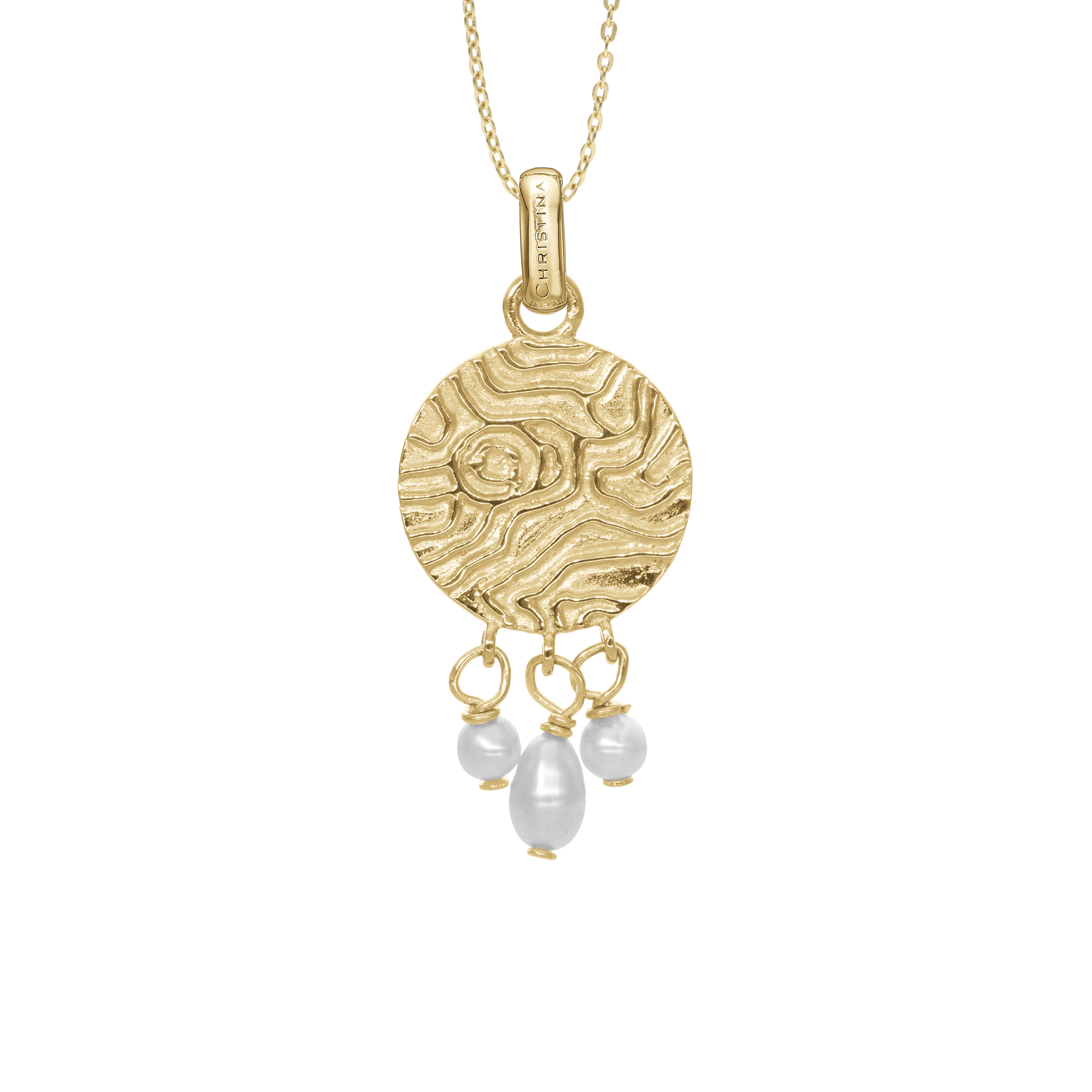 Dazzling imprint Pendant - Polished Gold Plated Sterling Silver with 3 white Freshwater pearls