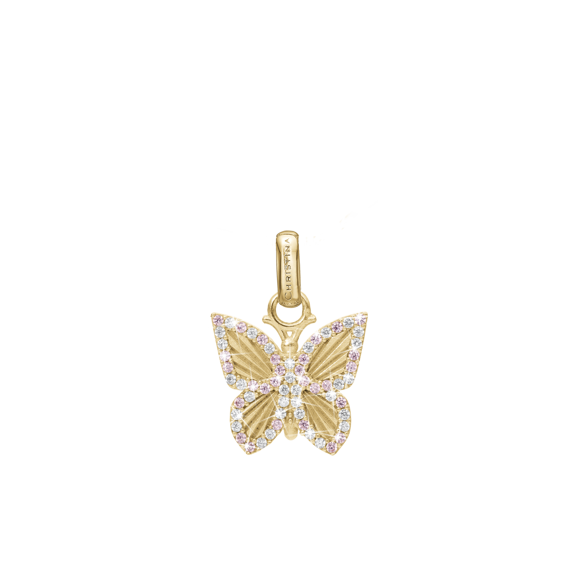 Pretty Butterfly Earring Pendant - Polished Gold Plated Sterling Silver with 32 Pinke Cubic Zirkonia680-G146