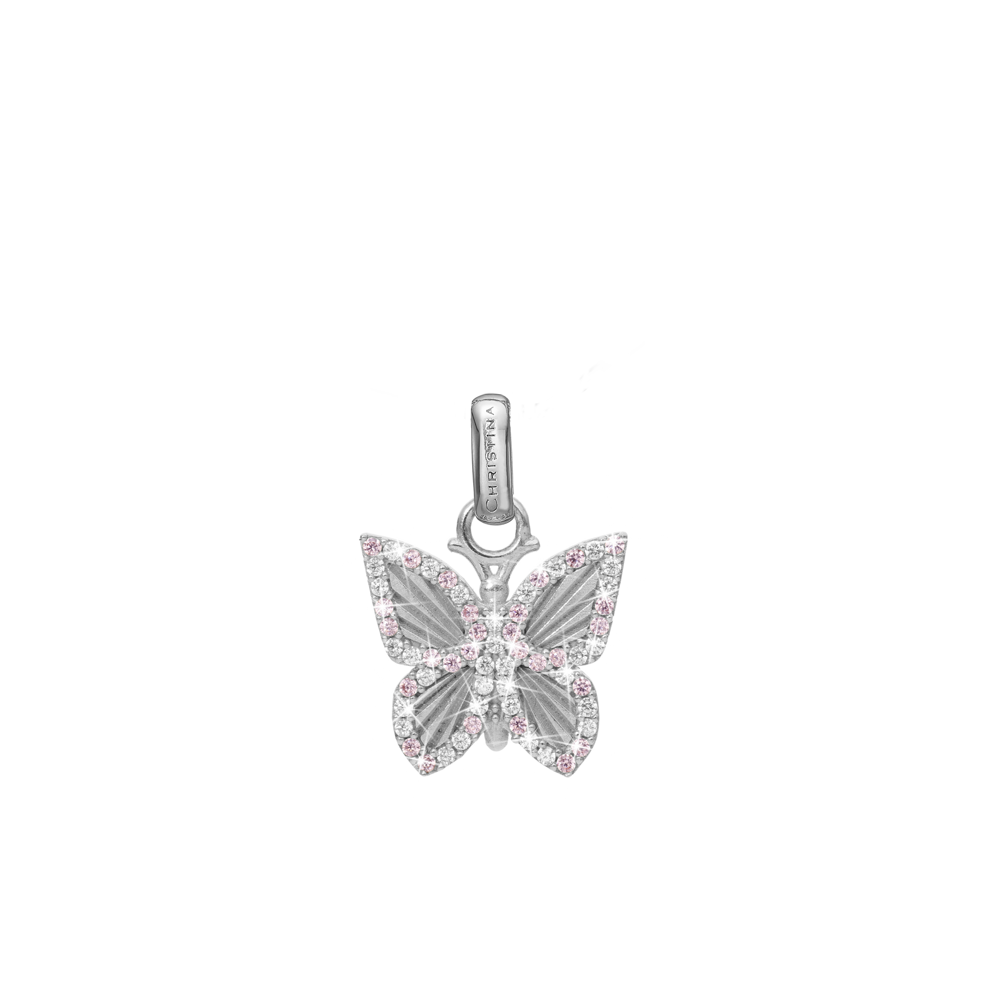 Pretty Butterfly Earring Pendant - Polished Sterling Silver with 32 Pinke Cubic Zirkonia