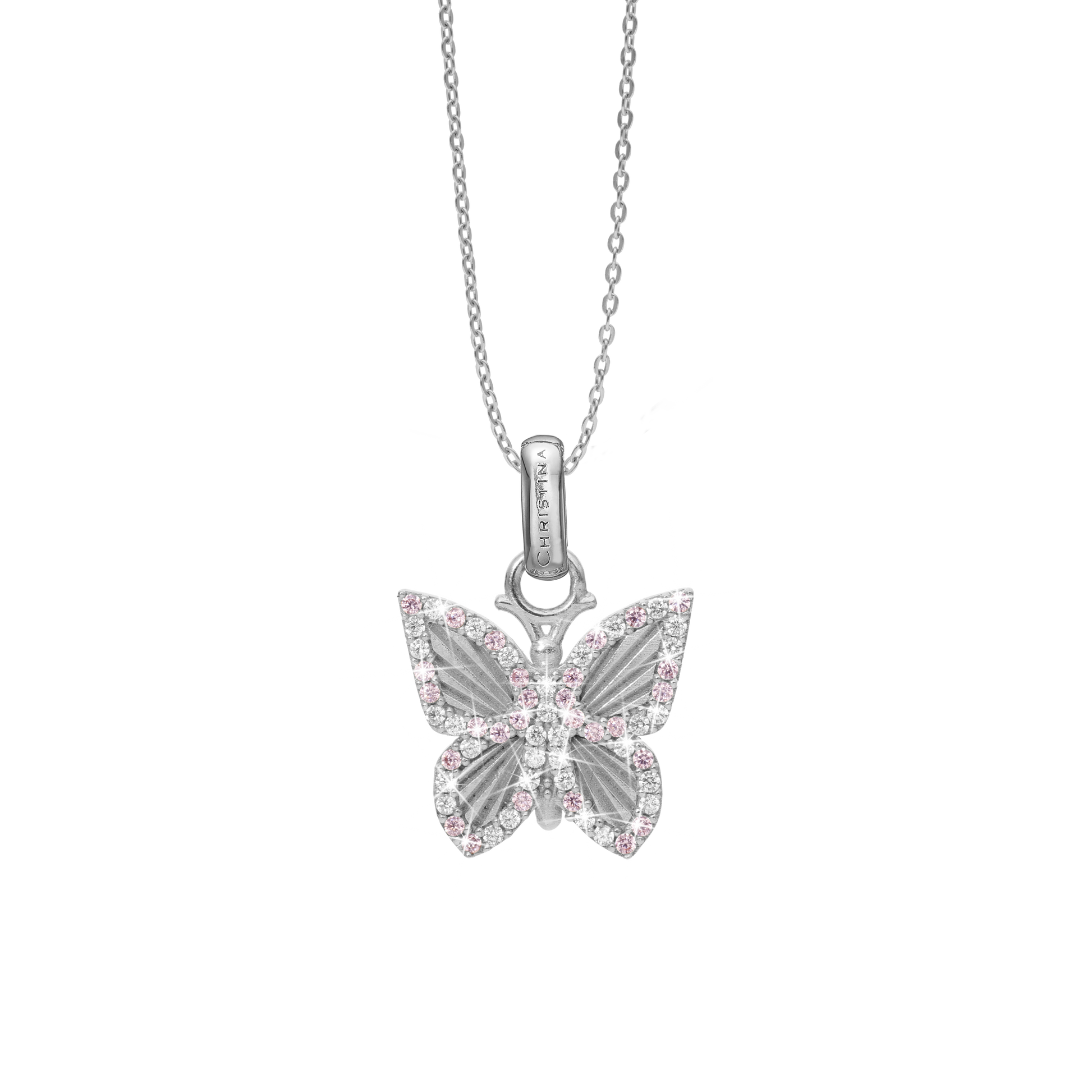 Pretty Butterfly Earring Pendant - Polished Sterling Silver with 32 Pinke Cubic Zirkonia680-S146