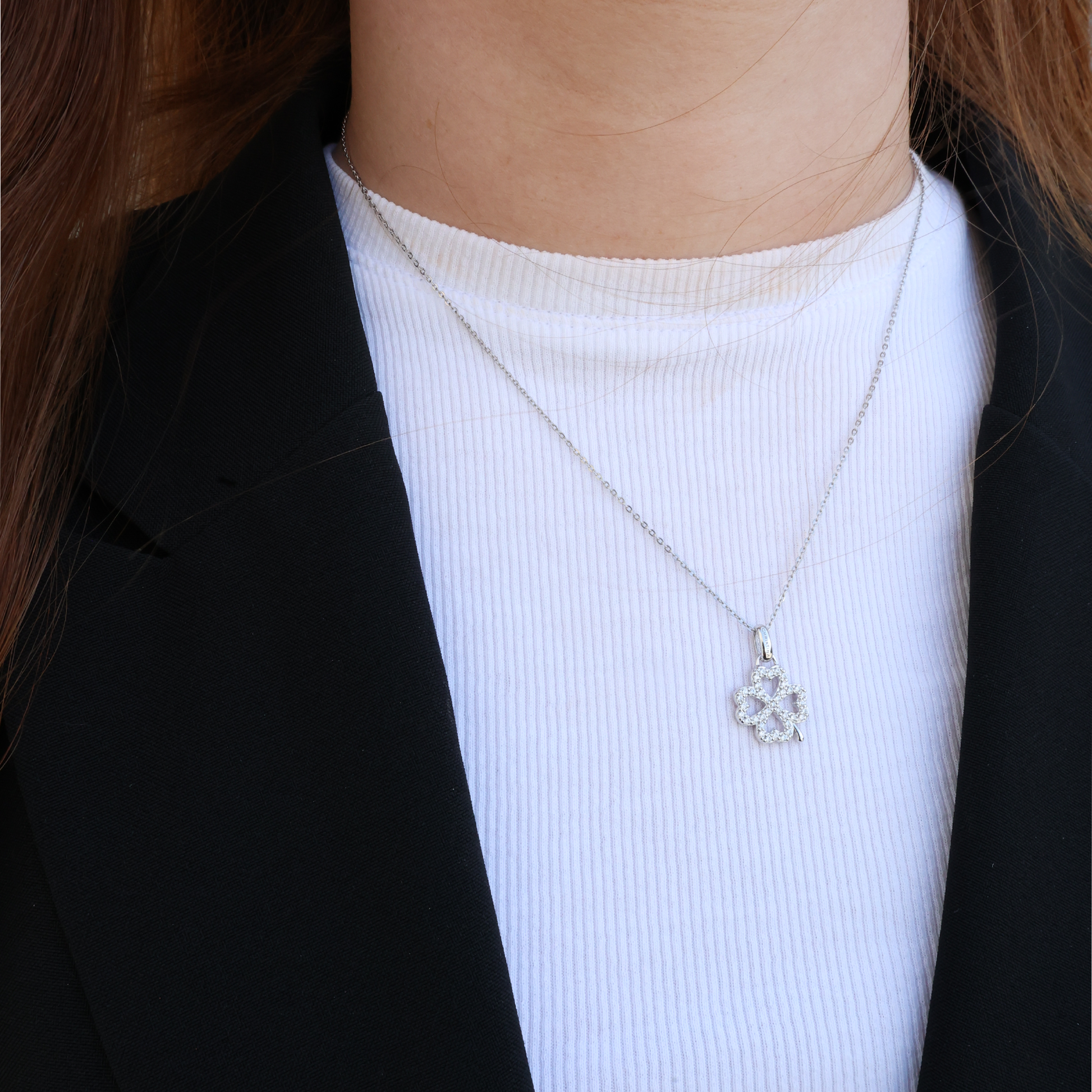 Shimmery Clover Earring Pendant - Polished Sterling Silver with 37 Cubic Zirkonia