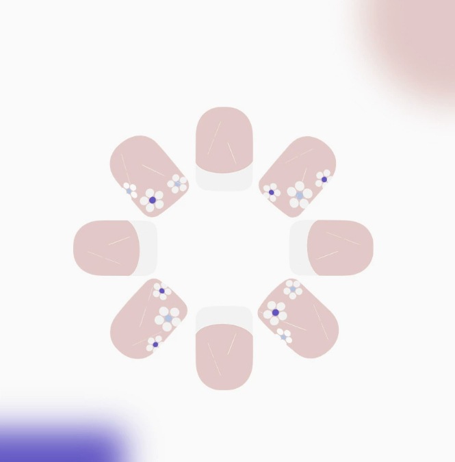 24 Stück tragbare Nagel-Patches mit Nagellack, weiß, mit französischen Blumen