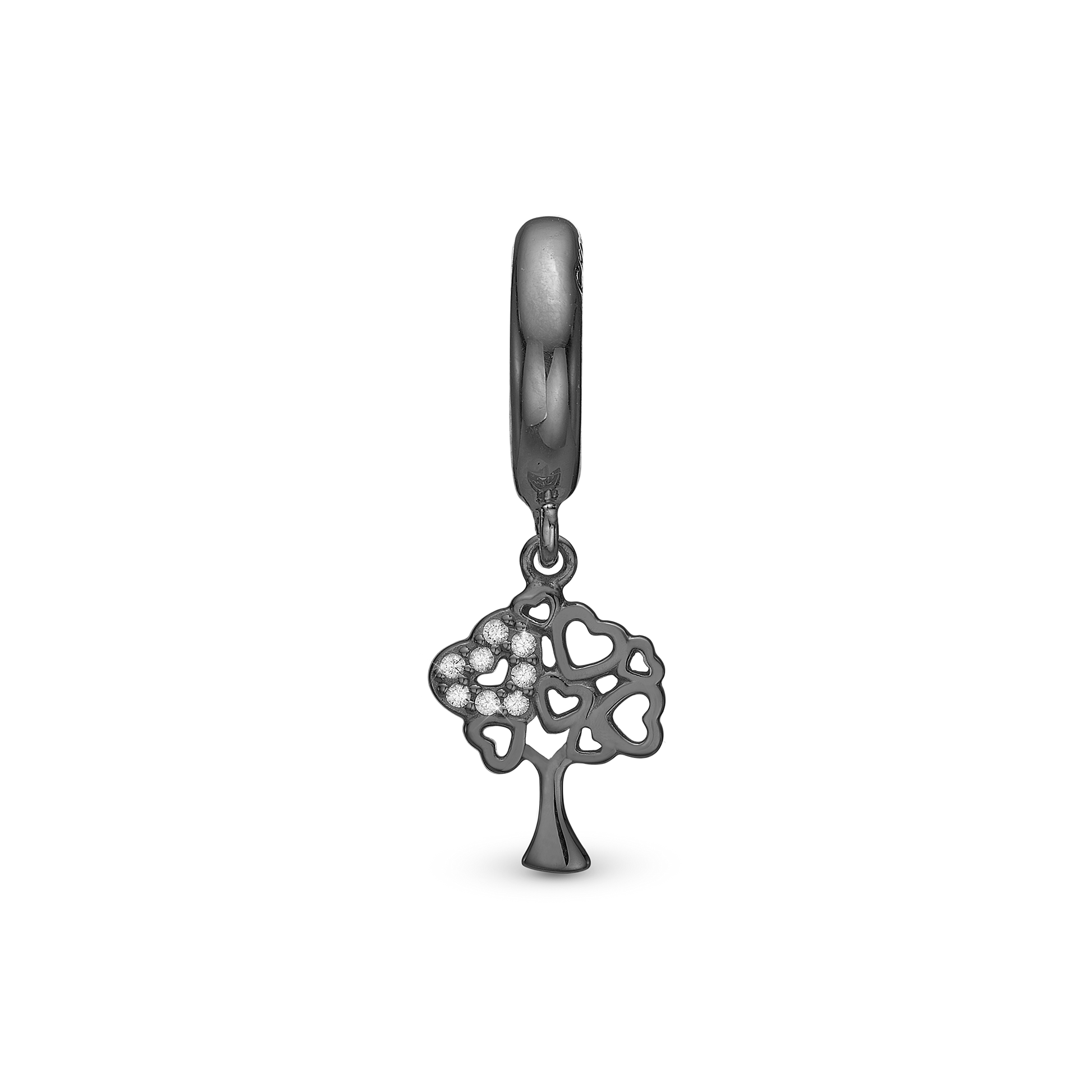 Tree of Hearts Drop Earring Charm 6 mm for Bracelet - Polished Ruthenium Plated with 8 white Cubic Zirkonia
