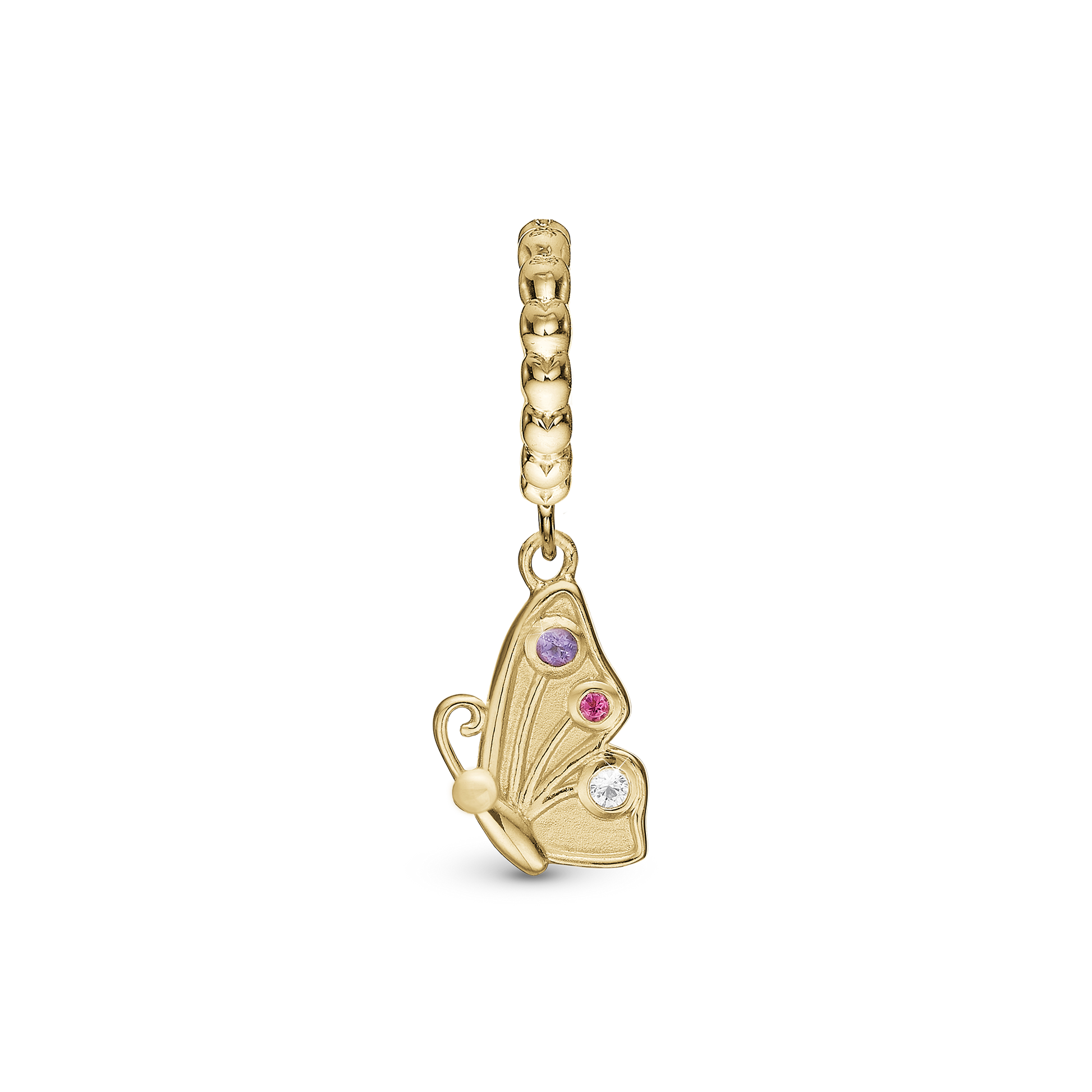 Butterfly Friend Hænger Charm 6 mm Til Armbånd - Børstet Forgyldt Sterling Sølv m. 3 Multi color Cubic Zirkonia