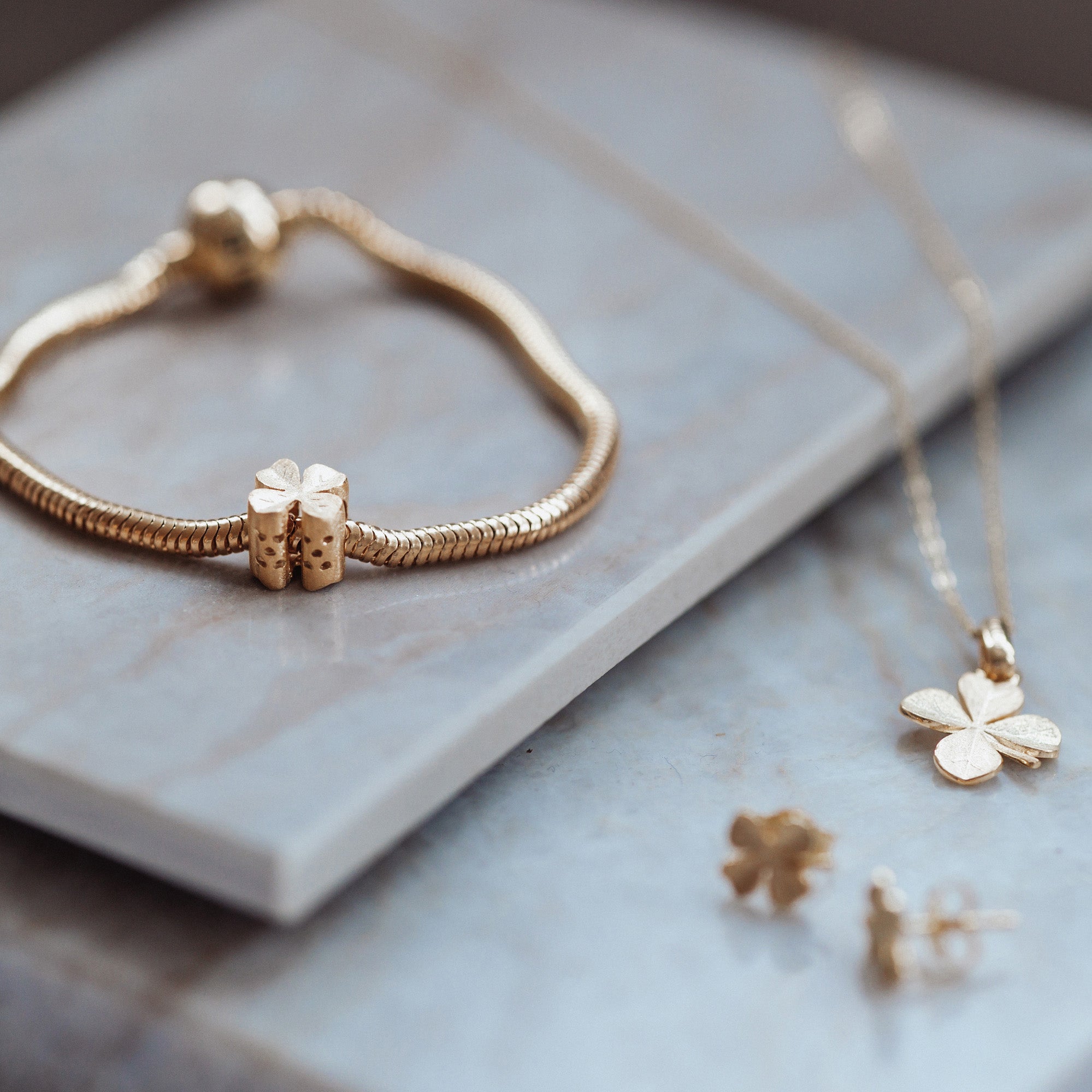 Four Leaf Clover - Charm 4 mm with Bracelet - Brushed Golded Sterling Silvert