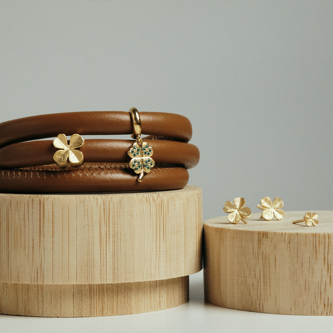 Menge für FoWatch Leaf Clover Simple Earring Stud / Single Stud - Gold Plated Sterling Silver erhöhen