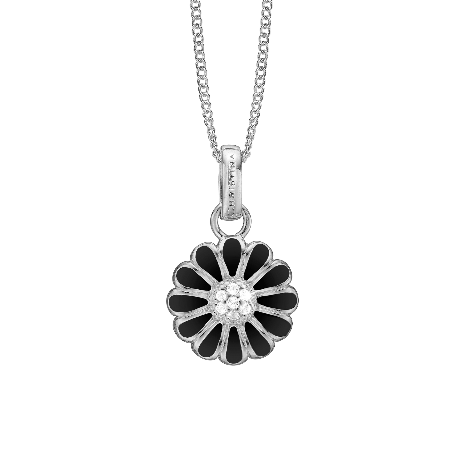 16 mm Black Marguerite Earring Pendant - Sterling Silver with 7 white