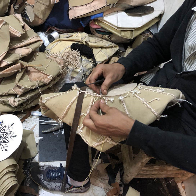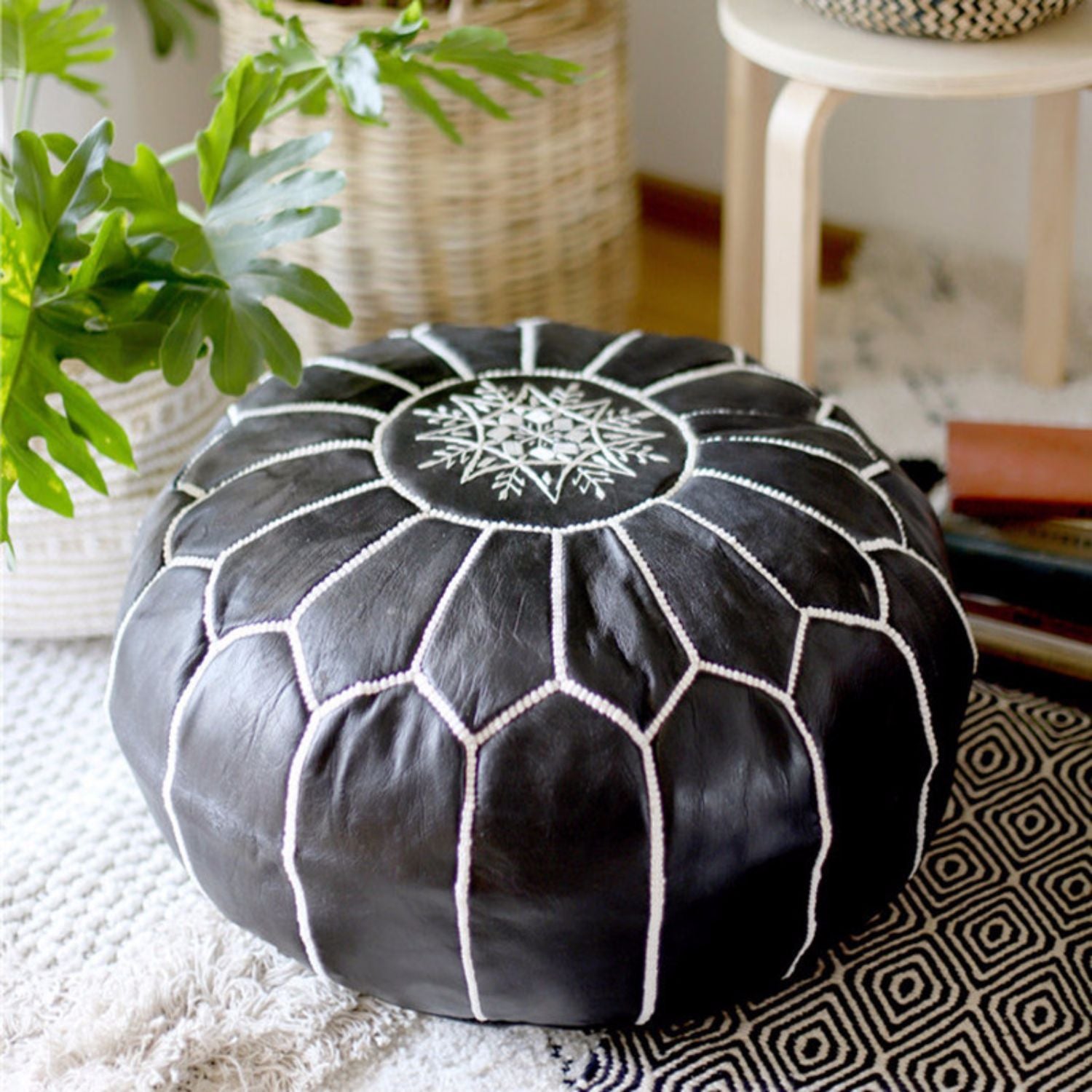 Marokkanischer Leder-Pier, handbestickter Schaffell-Futon