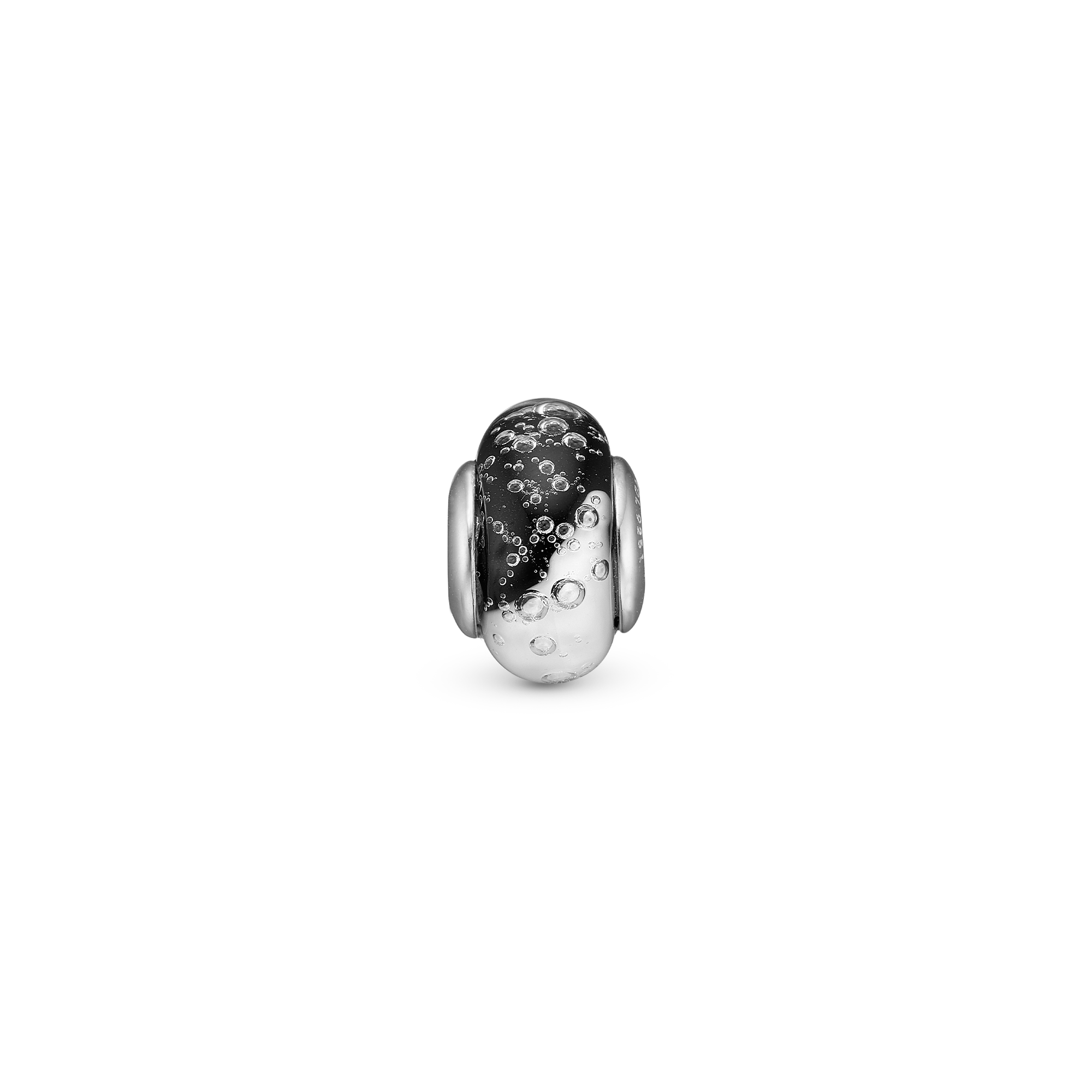 Bubbly Yin & Yang Globe - Charm 4 mm for Bracelet - Sterling Silver with 1 Glas