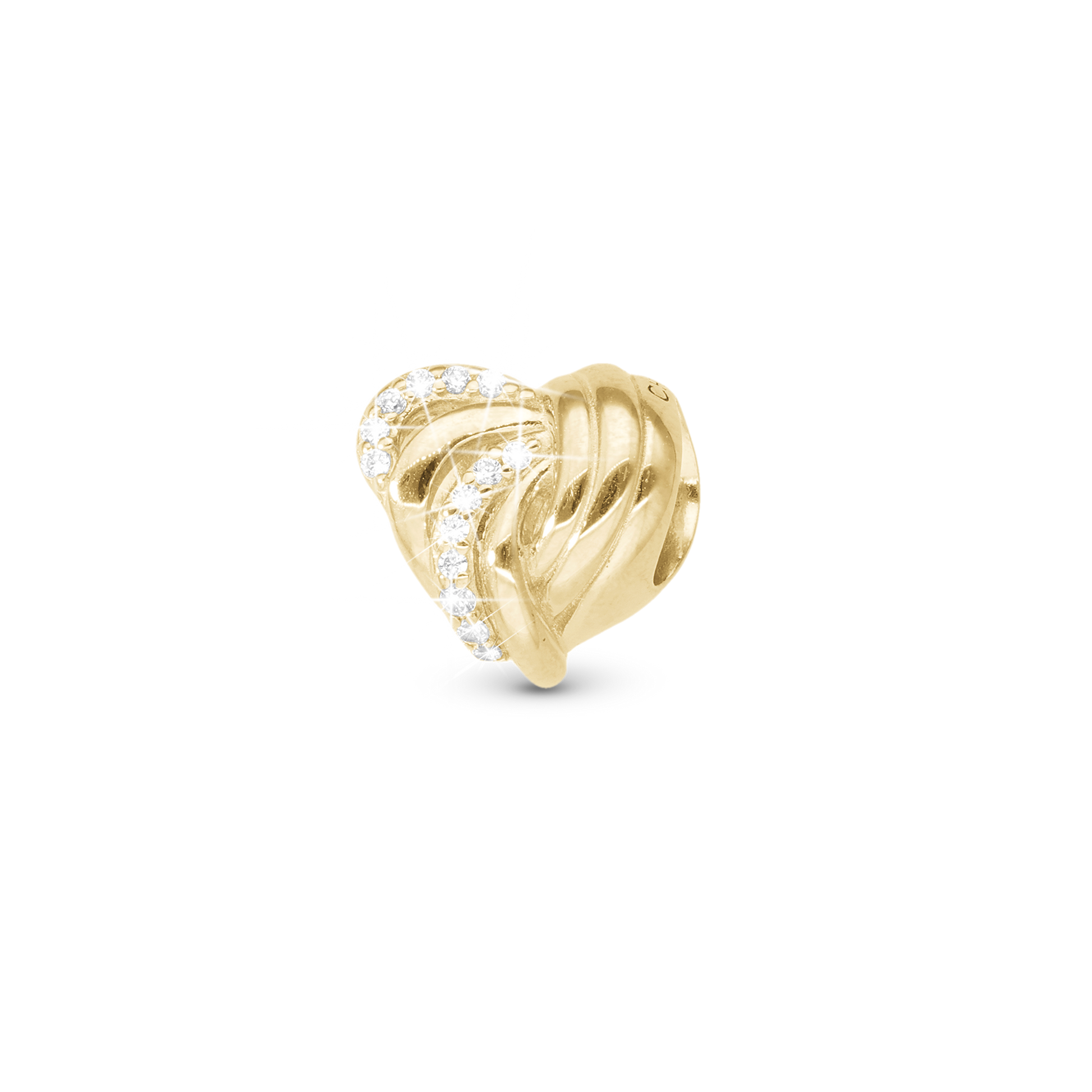 Spellbound Charm 6 mm for Classic Leather Bracelet - Polished Gold Plated Sterling Silver with 12 white Cubic Zirkonia
