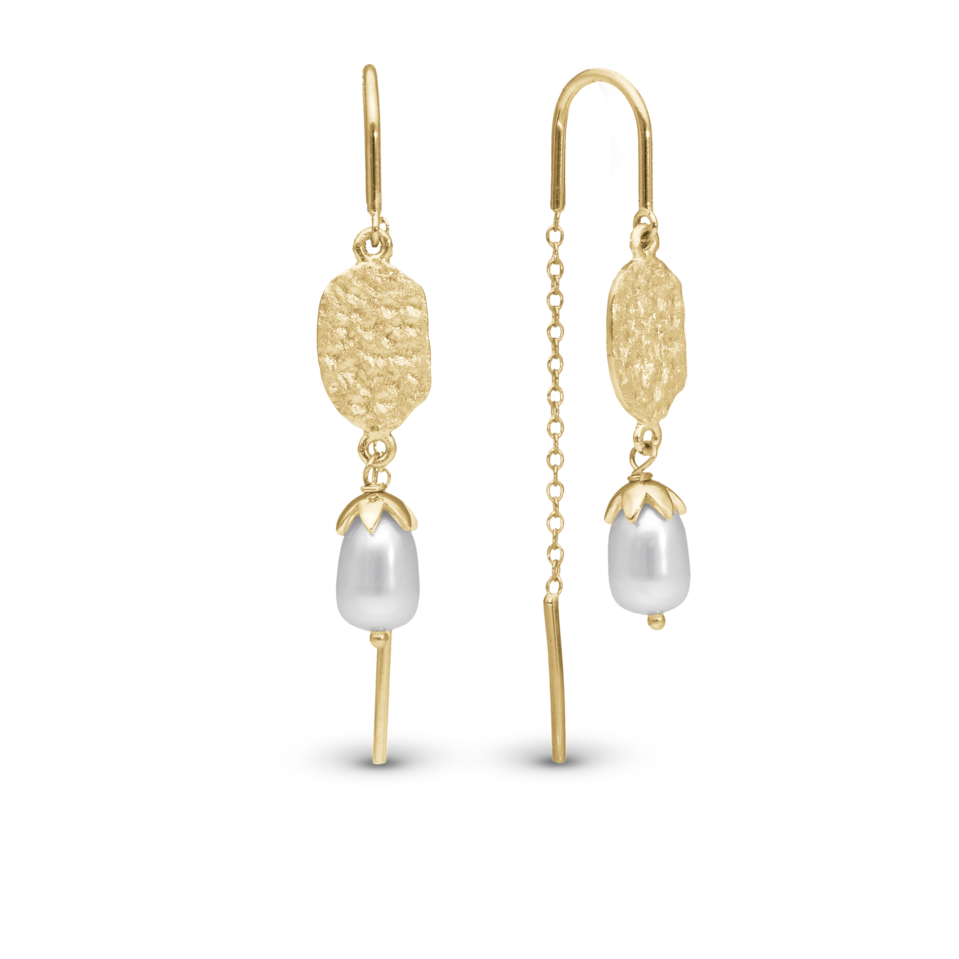 Sparkling Life Dangle Earring - Glitrende Gold Plated Sterling Silver with 2 white Ferskvandsperler