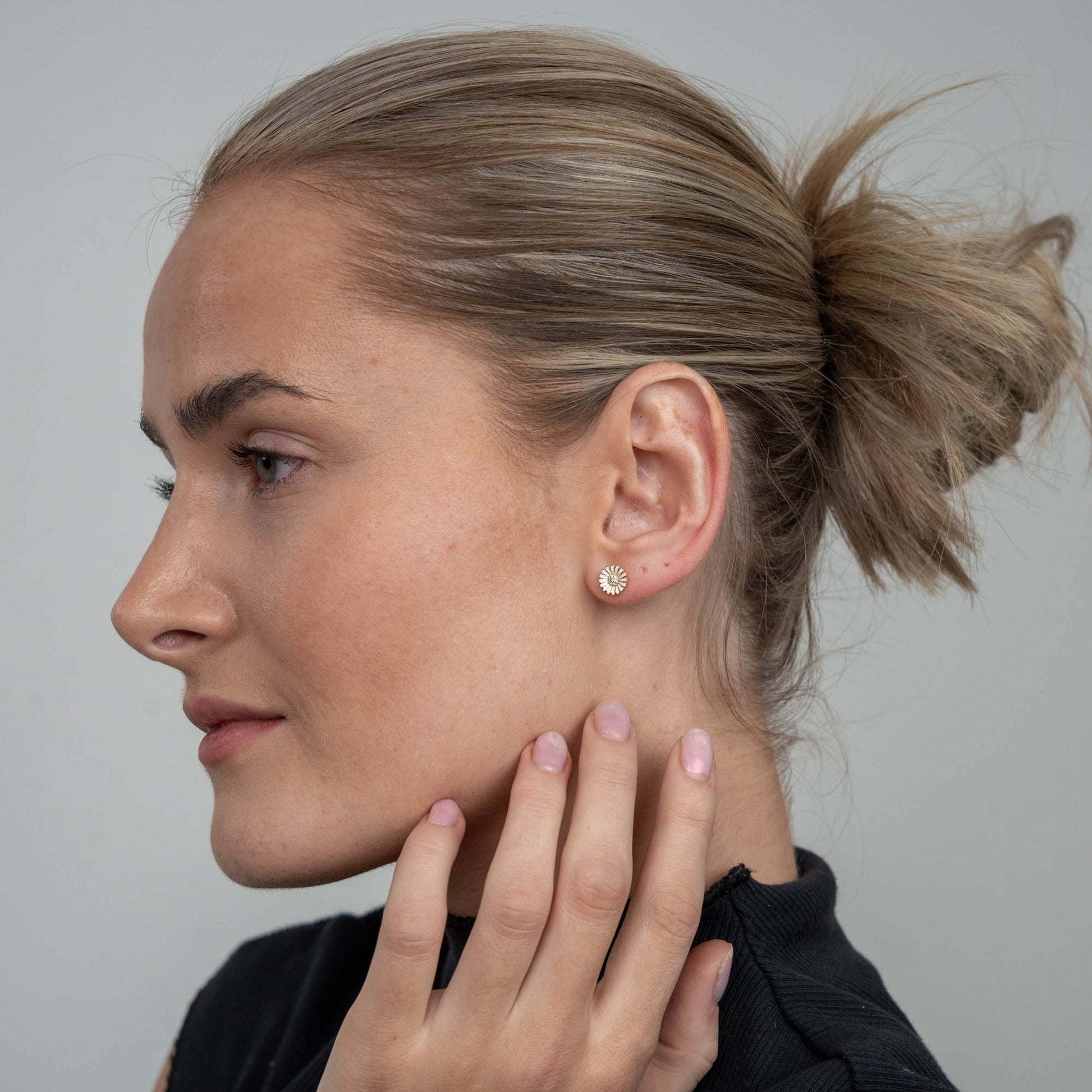 Marguerite CZ 8mm Stud Earrings - Gold Plated Sterling Silver with 14 white Cubic Zirkonia