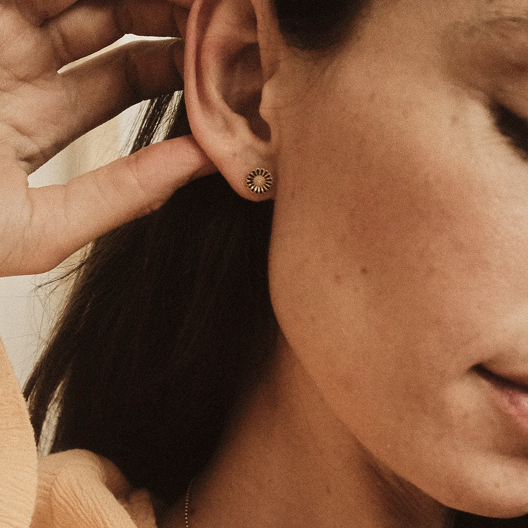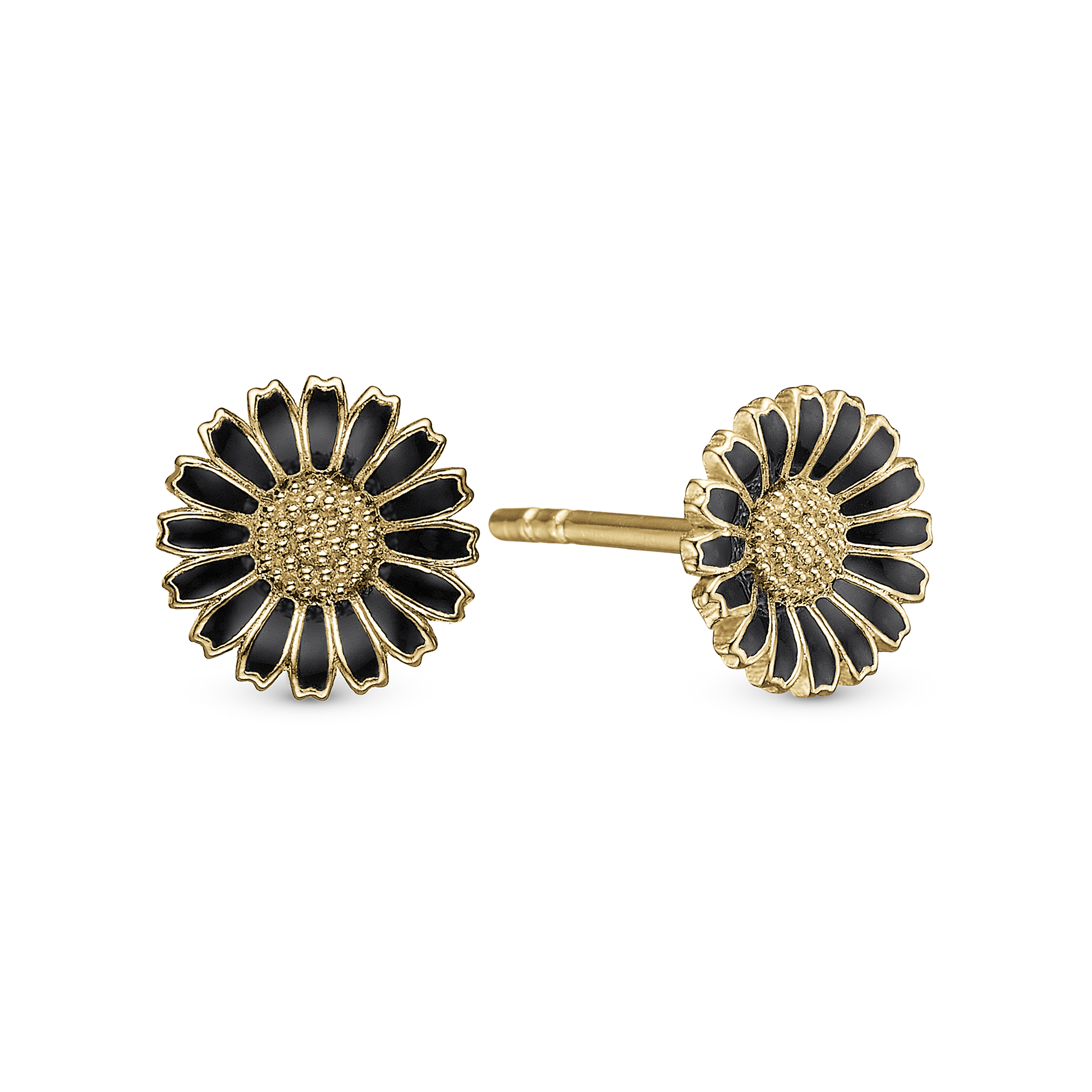 Marguerite black 8mm Stud Earrings - Gold Plated Sterling Silver