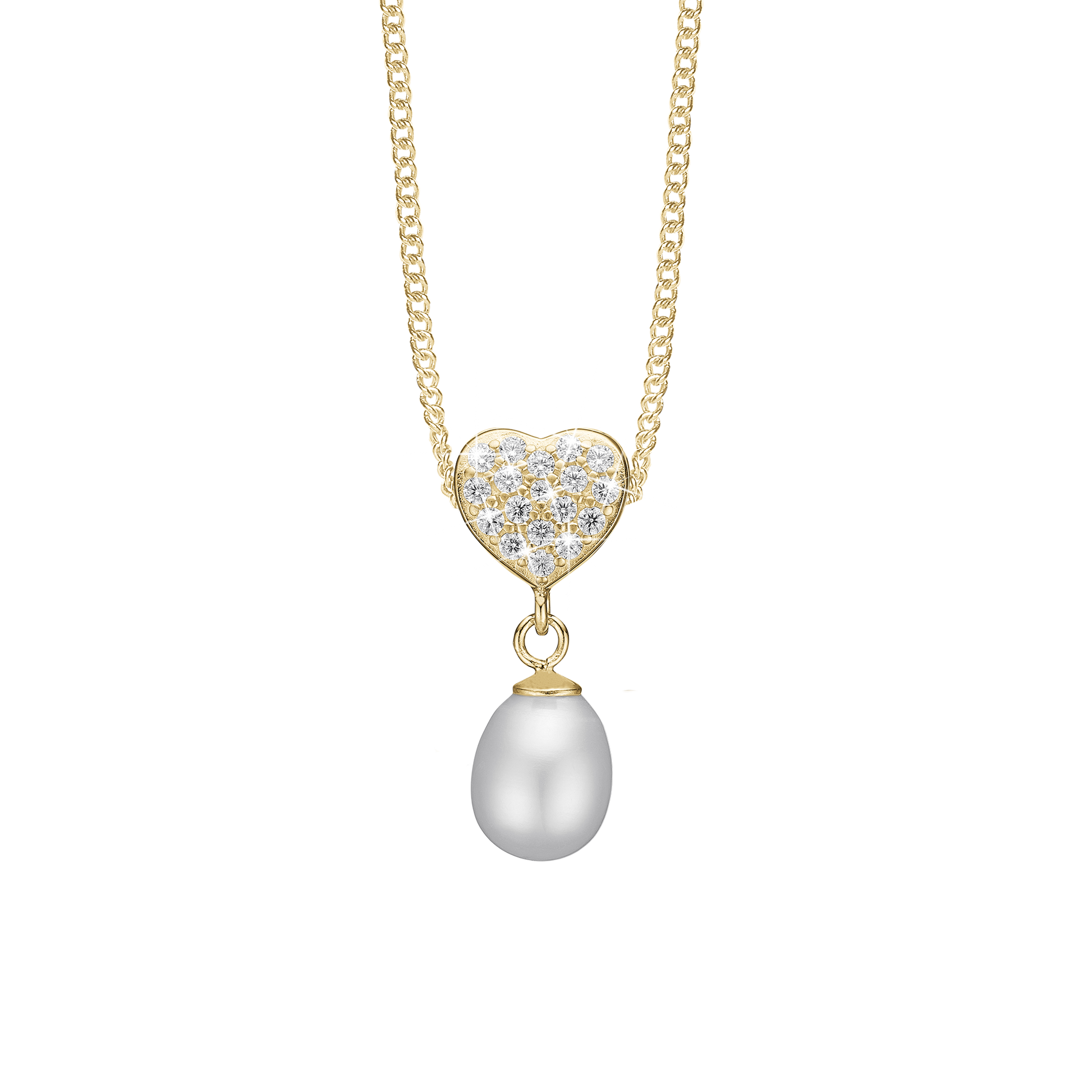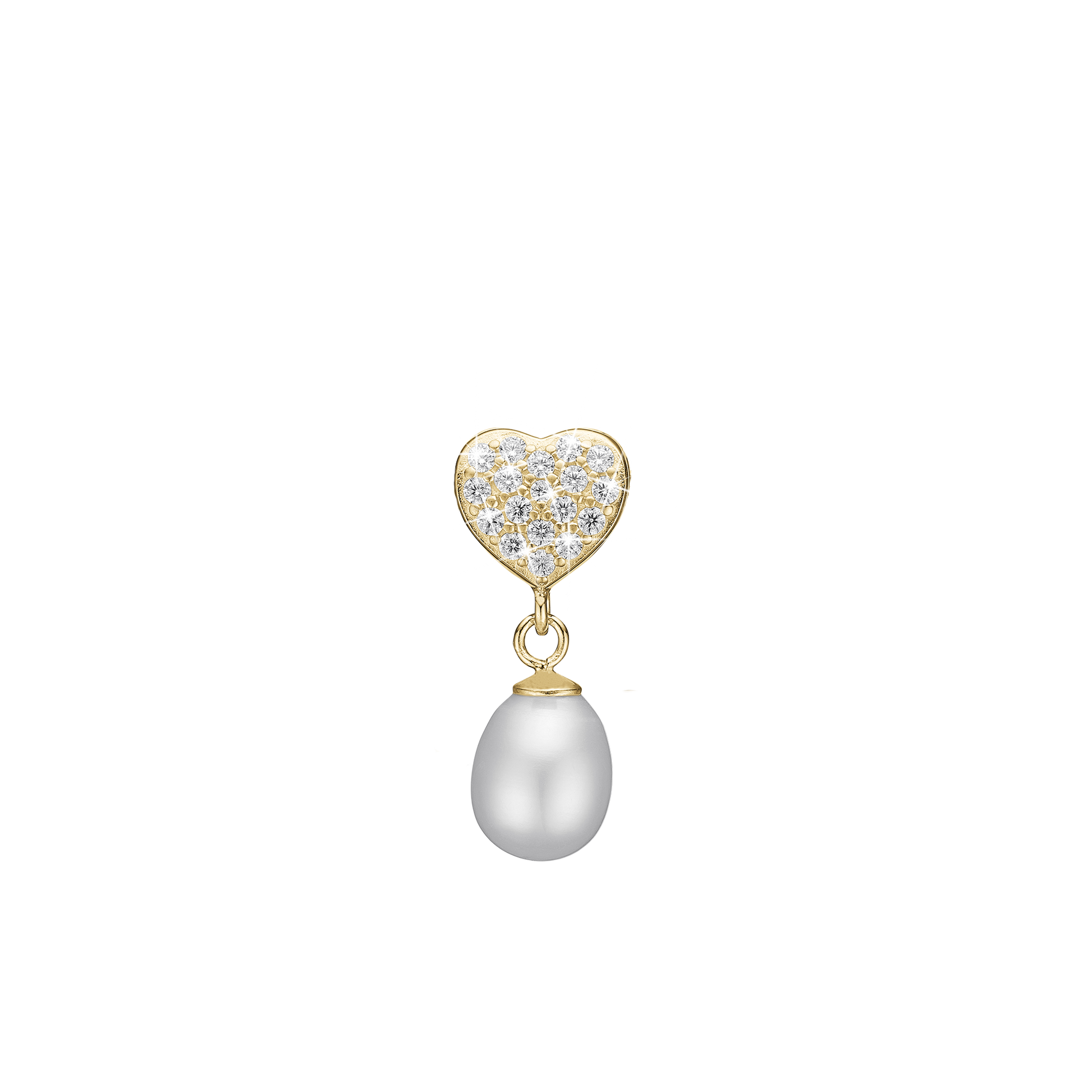 Sparkling Heart Earring Pendant - Gold Plated Sterling Silver with 14 white Cubic Zirkonia og 1 Ferskvandsperle680-G122