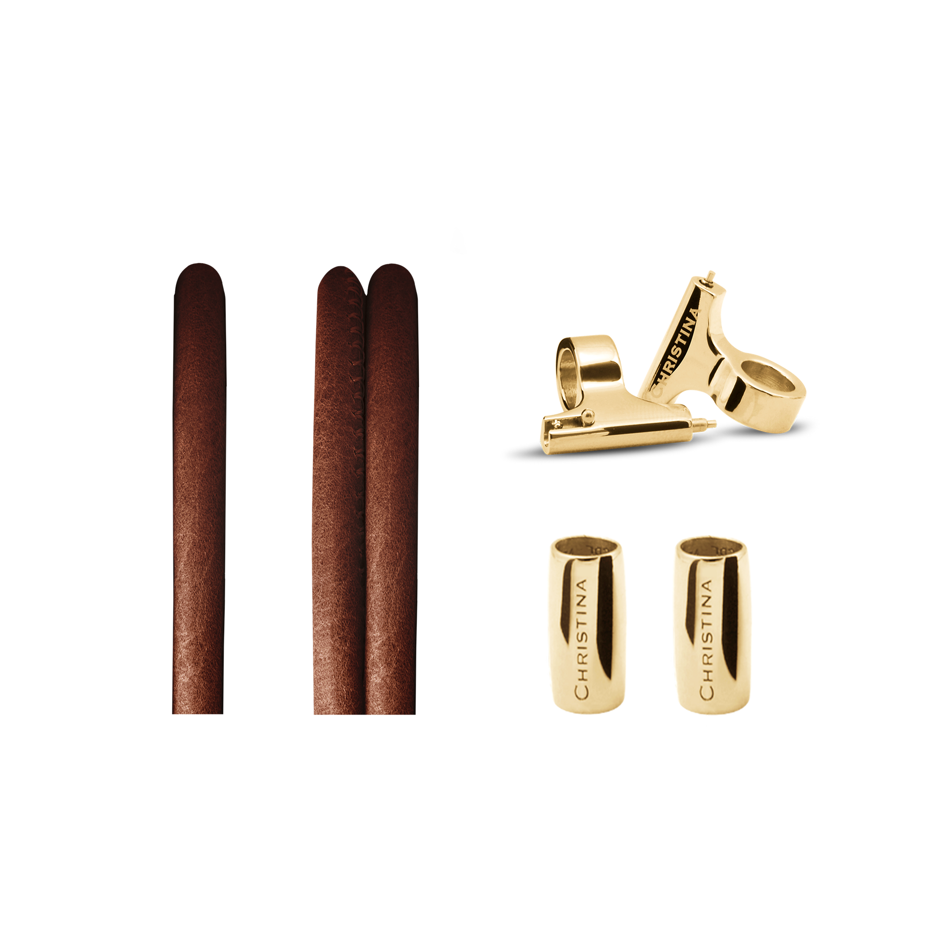 Slim Leather set for Watch Cognac - Gold Plated T-bars
