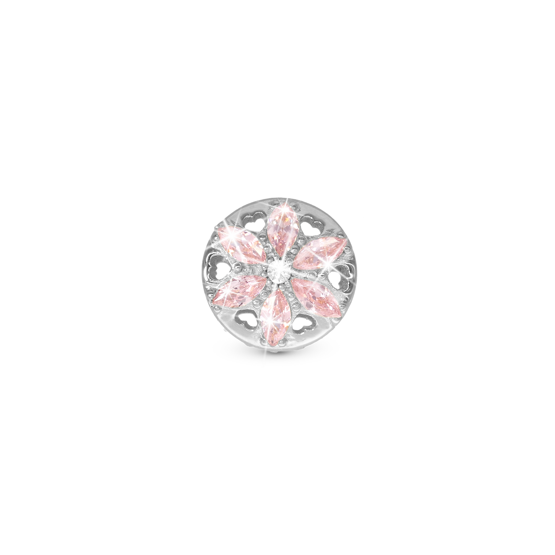 Sparkling pink flower Charm 6 mm for Classic Leather Bracelet - Polished Sterling Silver with 3 white Ferskvandsperler