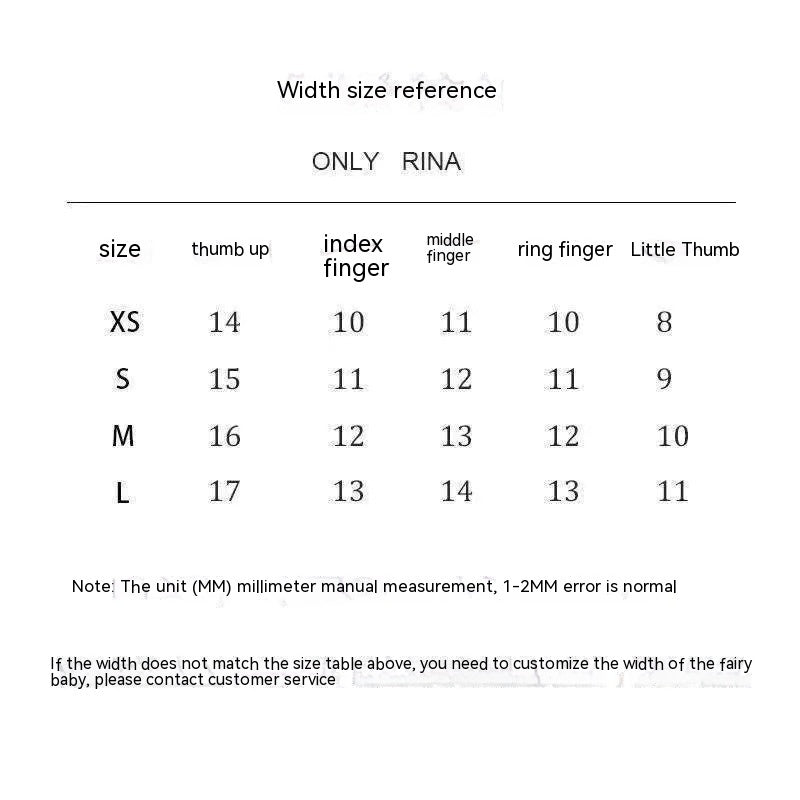 Specifications: ultra-small XS, small size S, medium M, large L