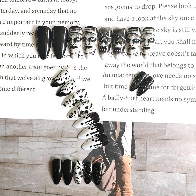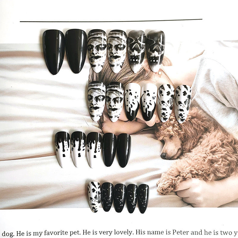 Long Almond Water Drop Fake Nail Patch Halloween Skull Wear Manicure