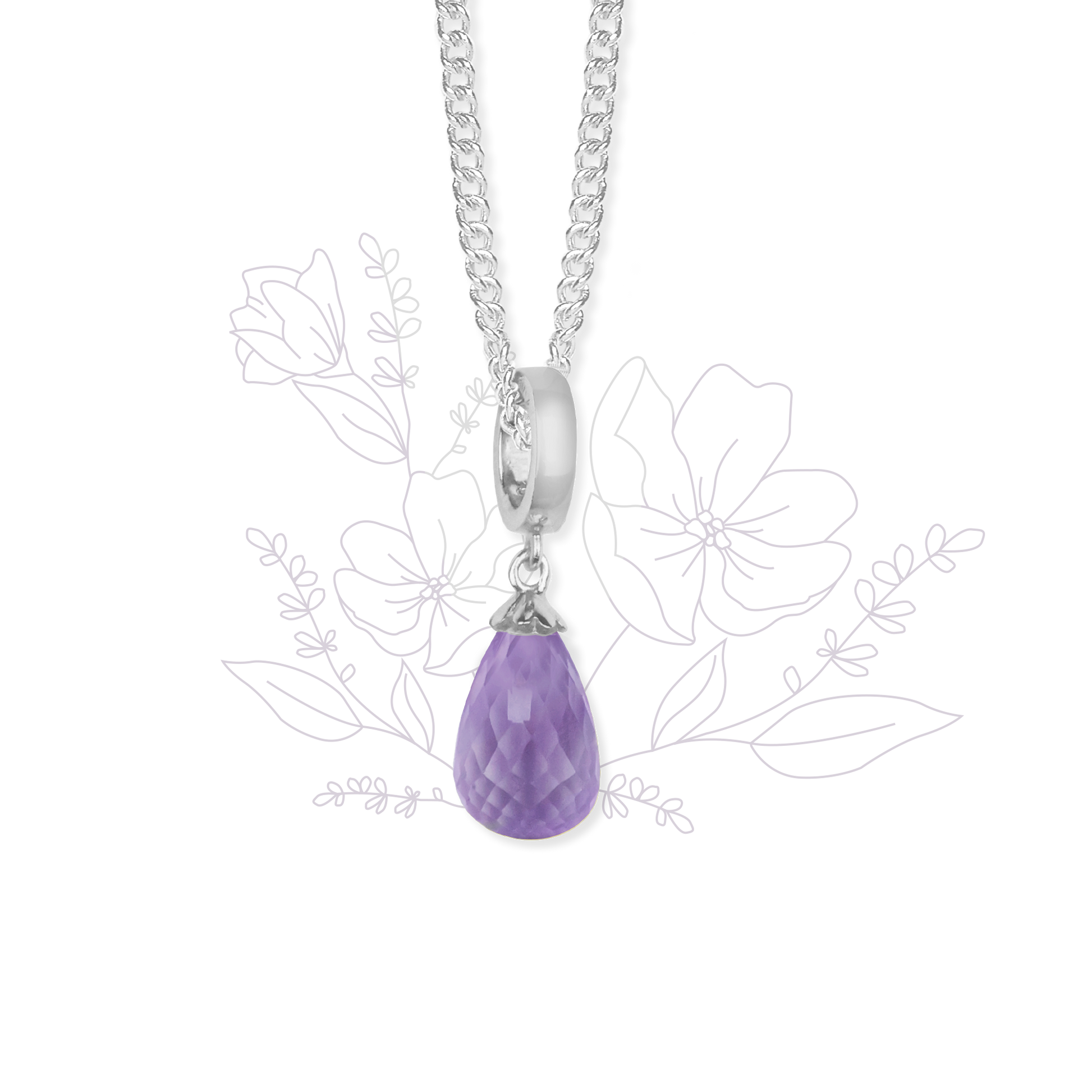 Halskæde m Lilla Amethyst drop sølv