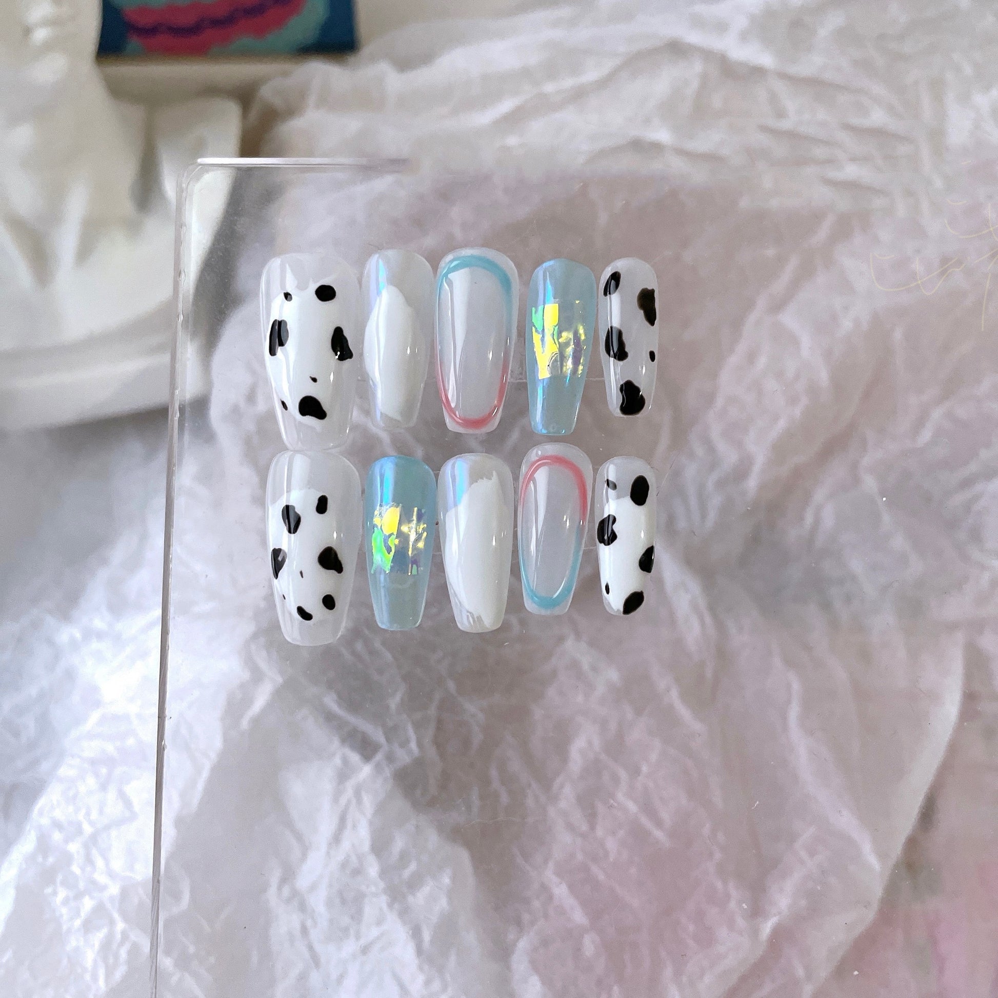 Summer Hand Painted Cow Pattern Nail Enhancement Patch