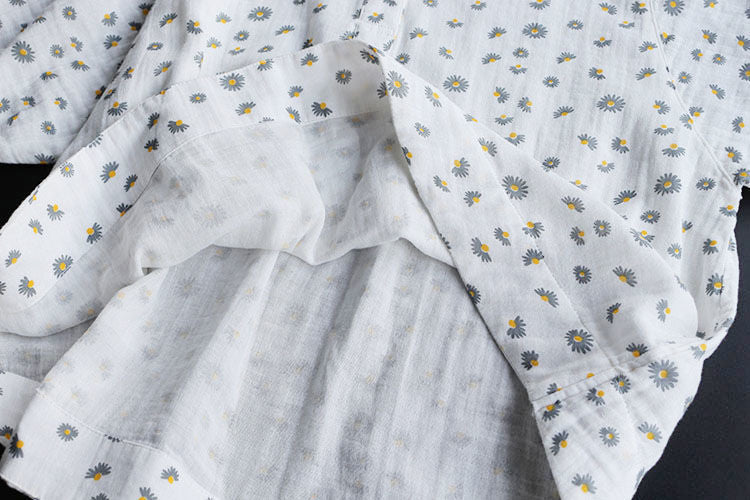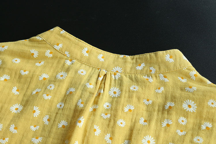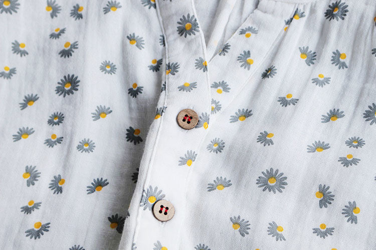 Women's Short Sleeve Cotton Yarn Print Stand Collar Shirt