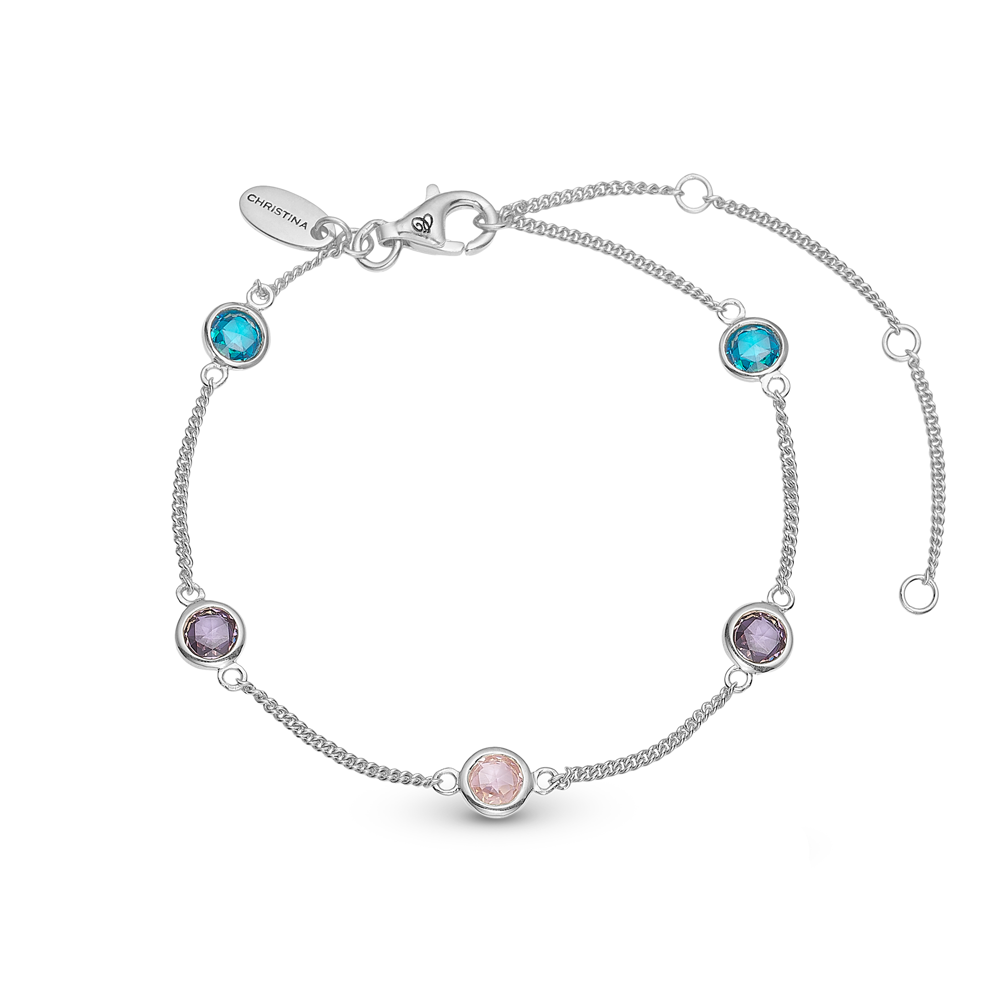 Increase quantity for Colourful Champagne Bracelet - Polished Sterling Silver with 5 Multi color Cubic Zirkonia