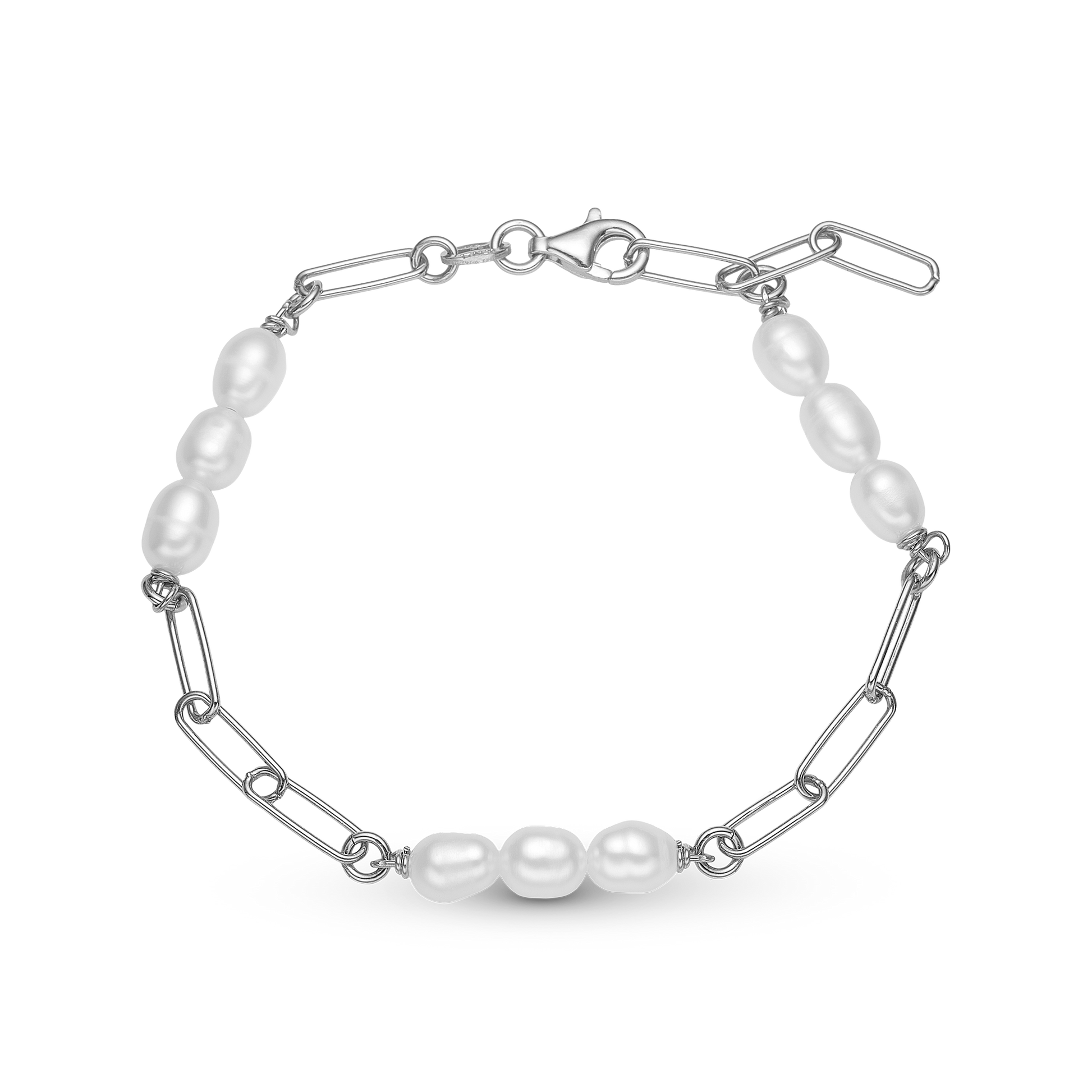 Linked Bracelet - Sterling Silver with 9 white Ferskvandsperler