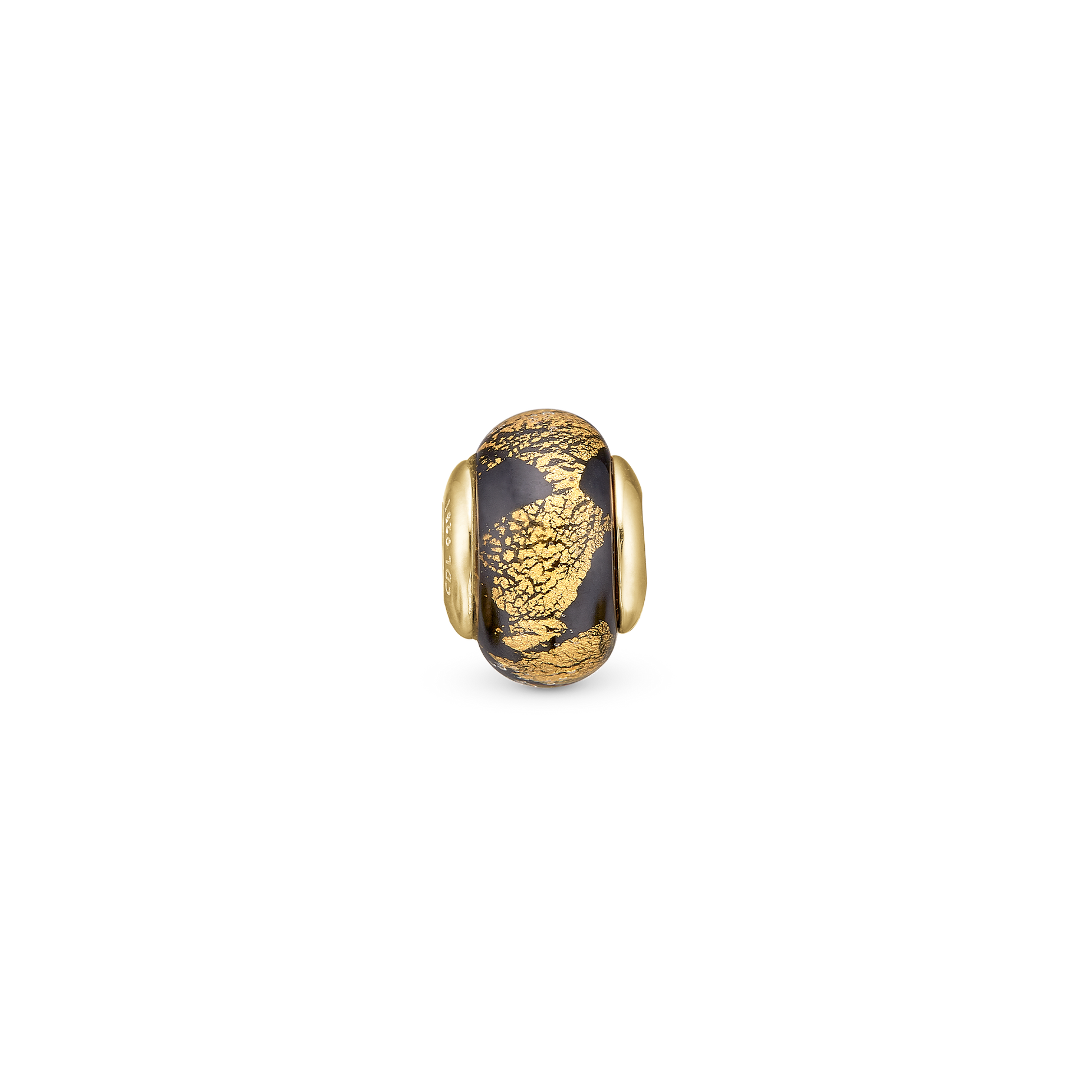 Golden Black Globe - Charm 4 mm for Bracelet - Gold Plated Sterling Silver with 1 Glas