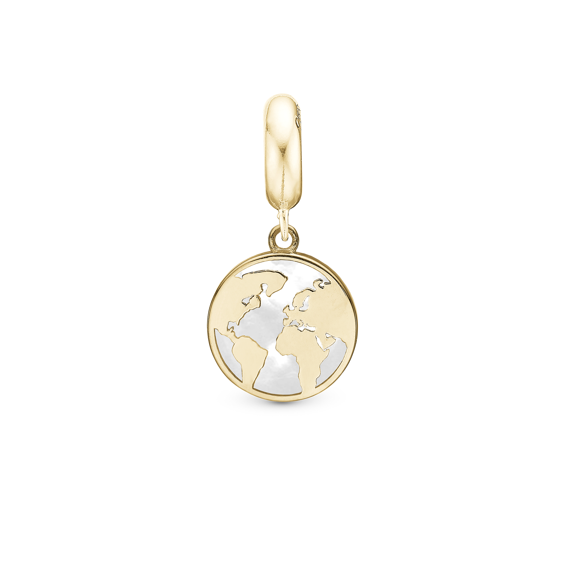 The World perlemor - Drop Earring Charm 4 mm for Bracelet - Polished Gold Plated Sterling Silver with Cubic Zirkonia