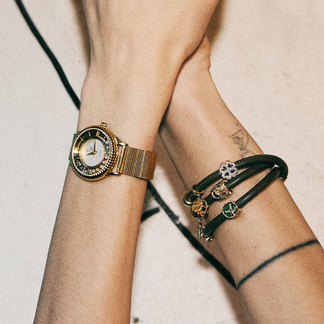 Lucky - Dangle Charm 4 mm with Bracelet - Polished/Matte Gold-Plated Sterling Silver