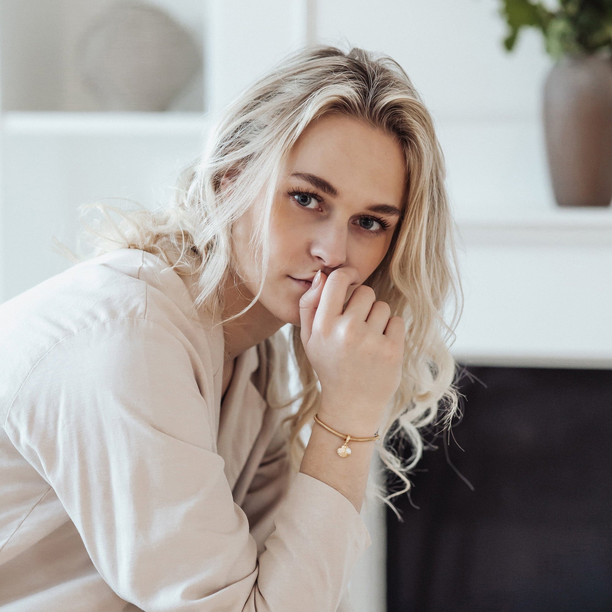 Clam shell - Dangle Charm 4 mm with Bracelet - Polished Gold-Plated Sterling Silver with 1 Freshwater Pearl