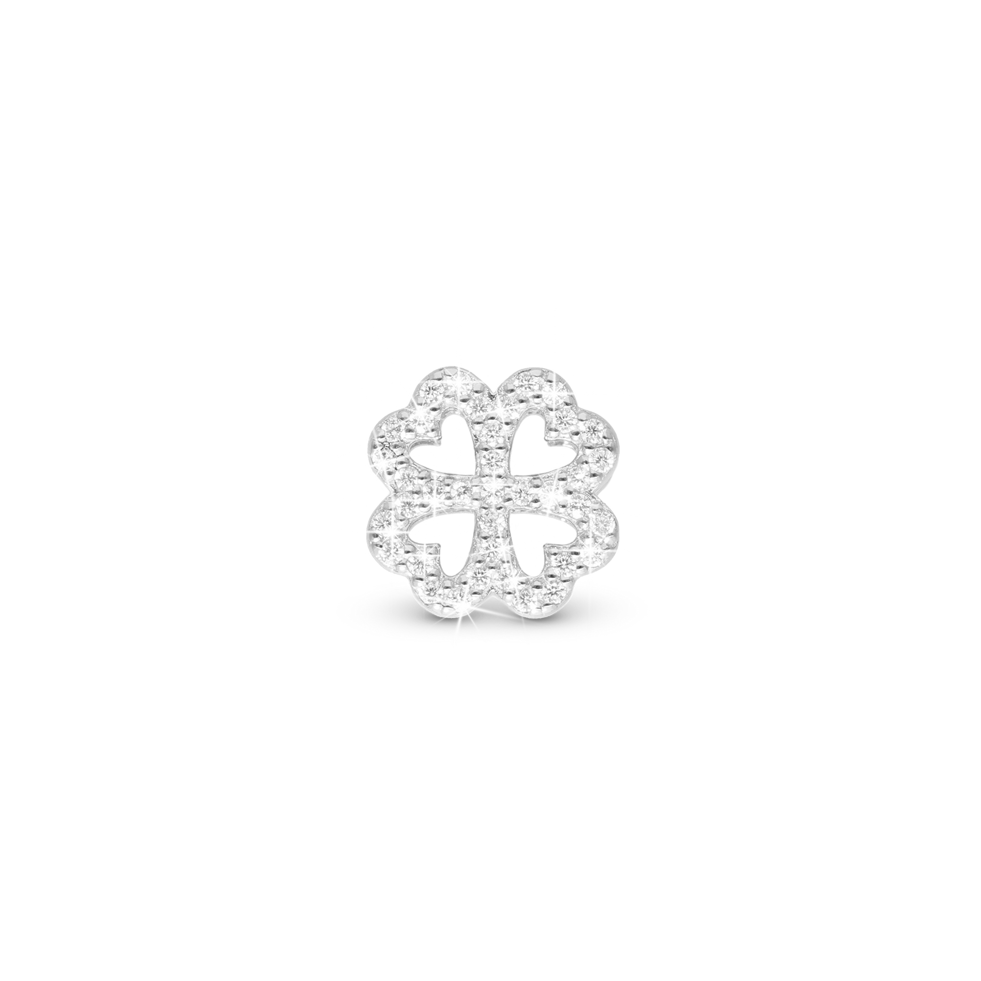 Shimmery Clover - Charm 4 mm for Bracelet - Polished Sterling Silver with 37 Cubic Zirkonia