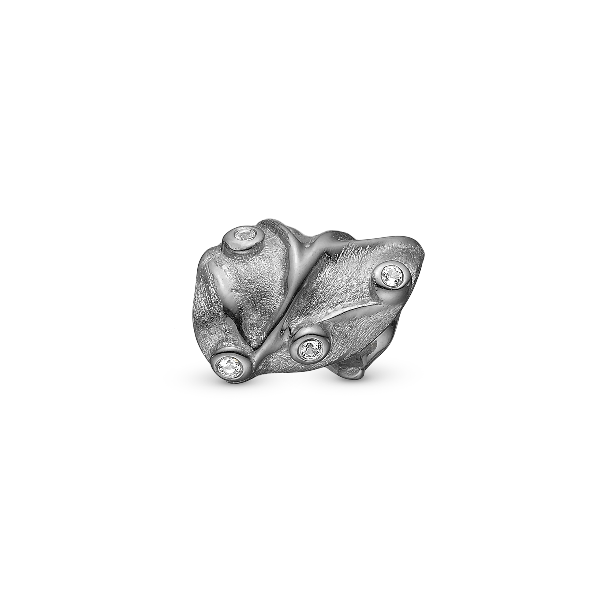 CWatchved Leaf Charm 6 mm for Classic Leather Bracelet - Matte Ruthenium Plated with 6 white Cubic Zirkonia
