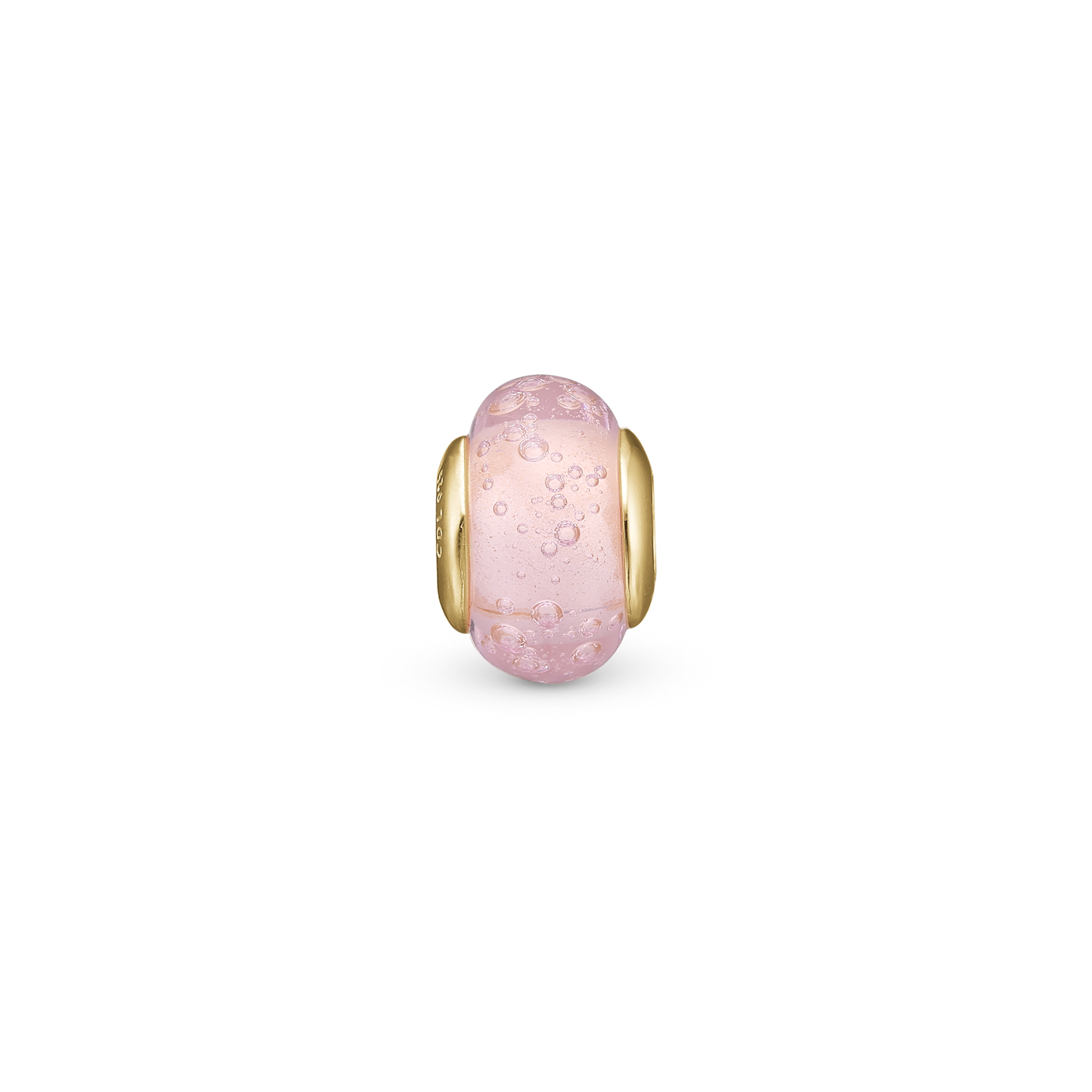 Bubbly Pink Globe Charm 6 mm for Classic Leather Bracelet - Gold Plated Sterling Silver with Glas