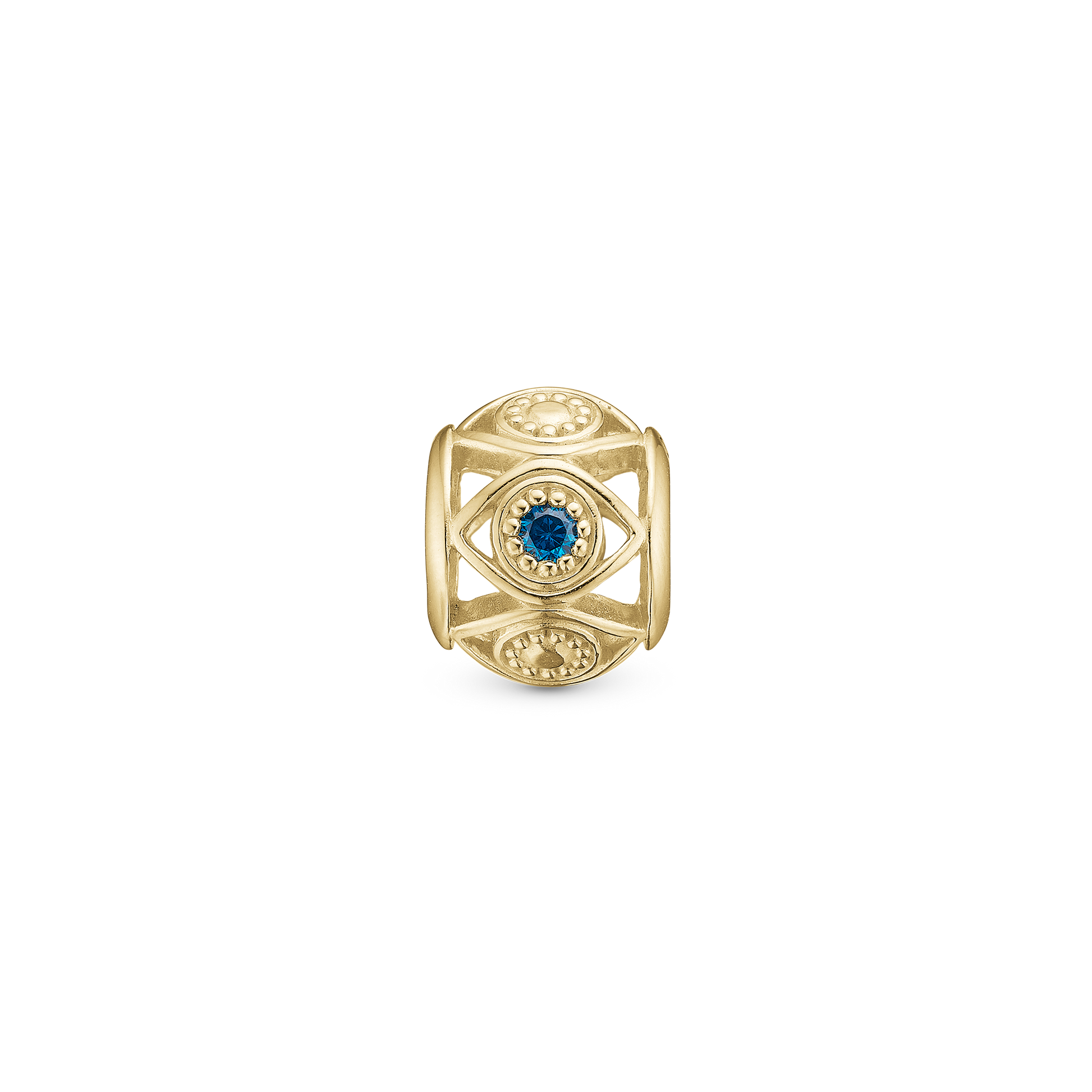 Magic Eye Charm 6 mm for Classic Leather Bracelet - Polished Gold Plated Sterling Silver with 1 Cubic Zirkonia