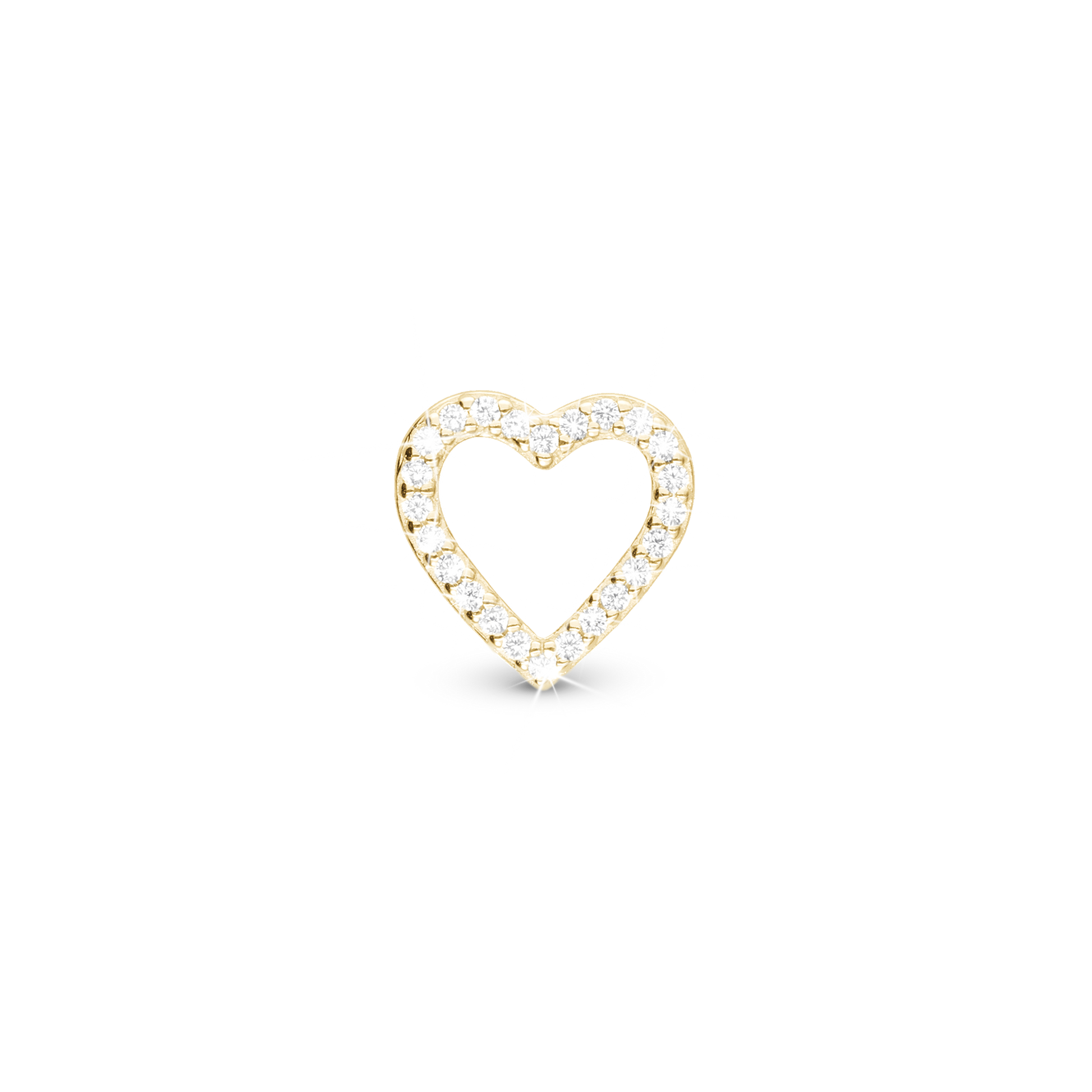 Shimmery Heart Charm 6 mm for Classic Leather Bracelet - Polished Gold Plated Sterling Silver with 24 white Cubic Zirkonia