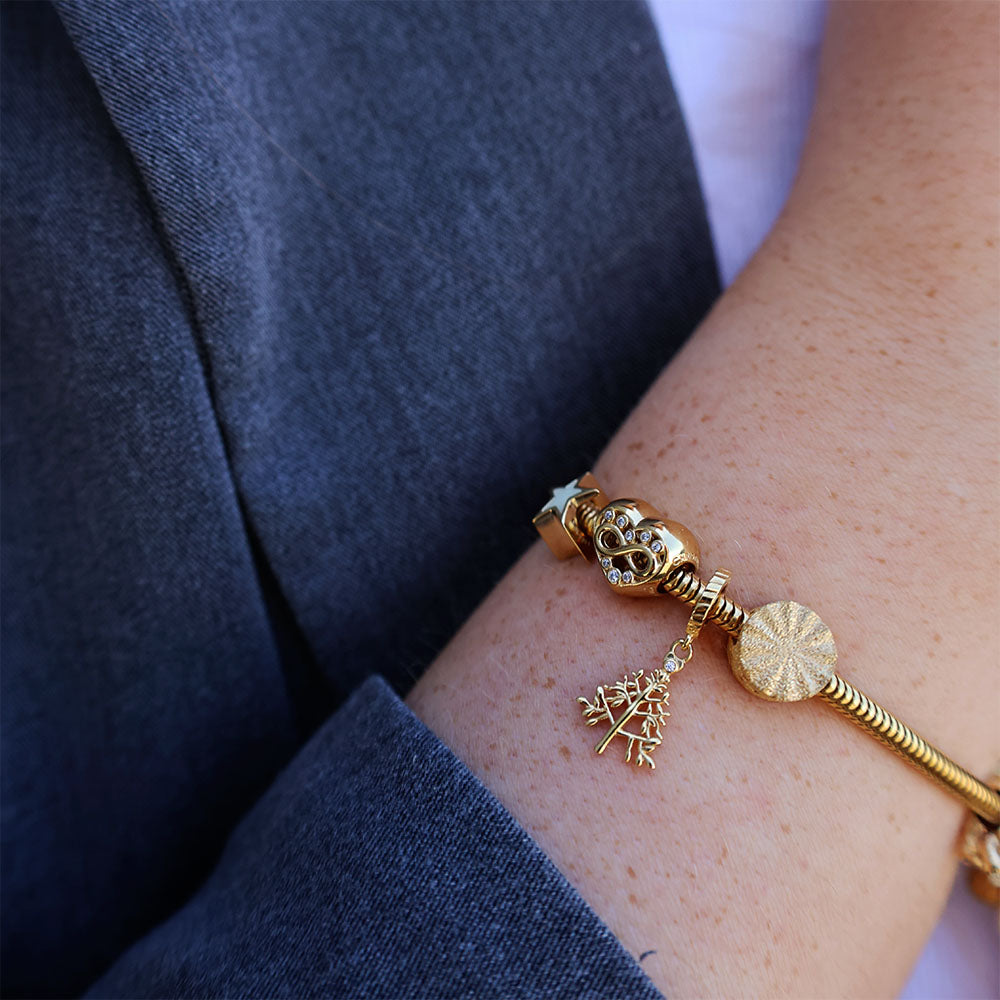 Eternity Love Heart Charm 6 mm for Classic Leather Bracelet – Polished Gold-Plated Sterling Silver with 16 White Cubic Zirconia