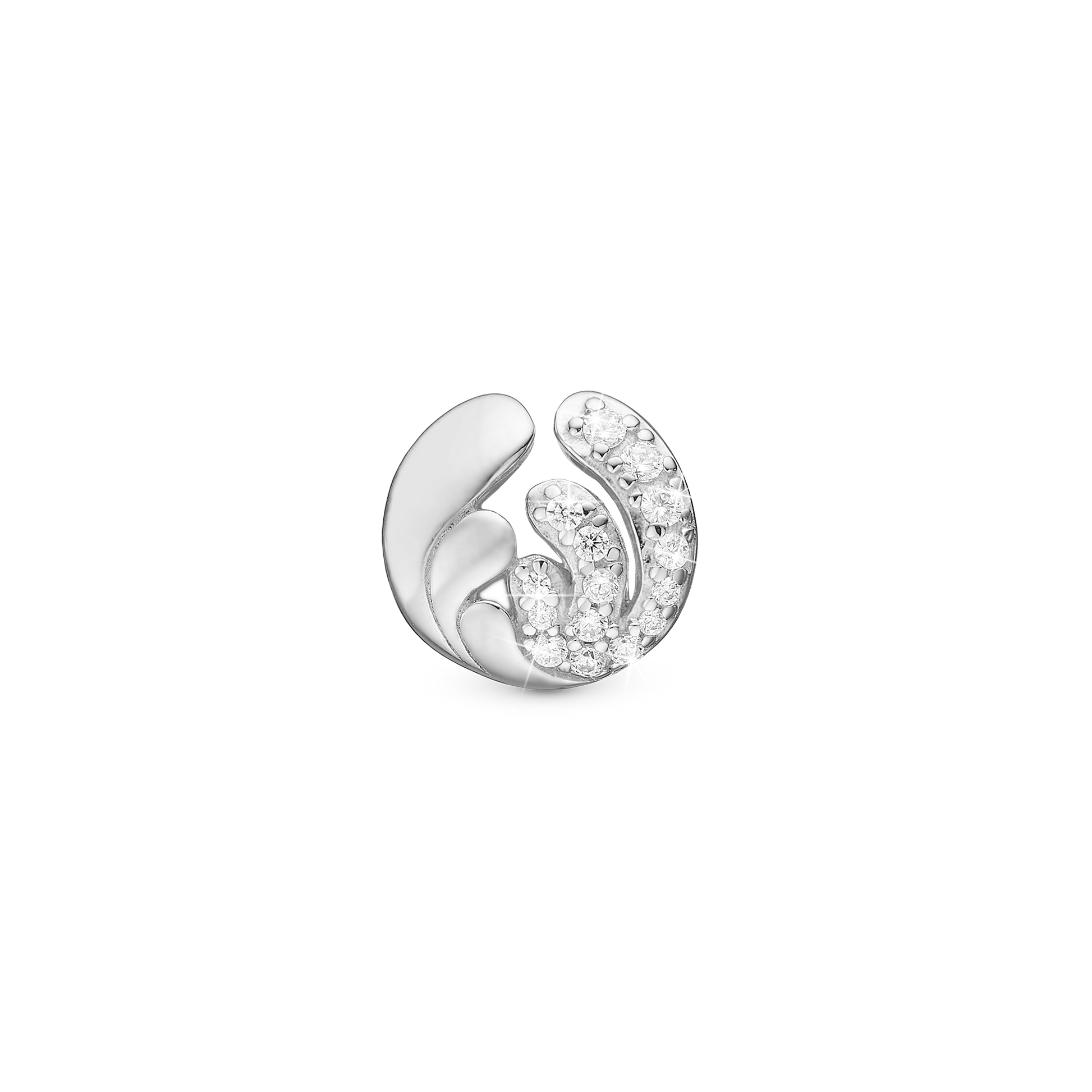 Ocean Splash Charm 6 mm for Classic Leather Bracelet - Sterling Silver with 15 white Cubic Zirkonia