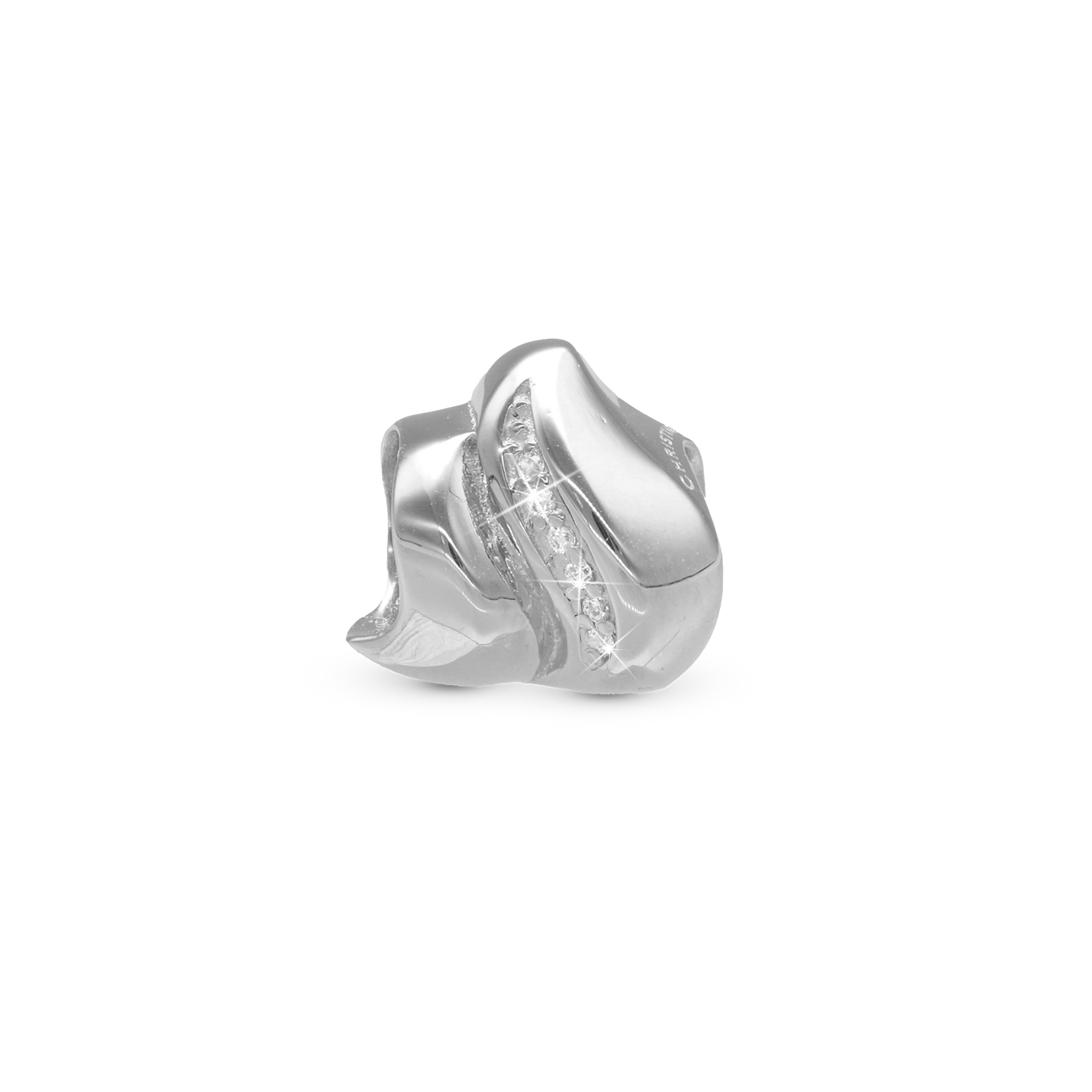 Majestic wave Charm 6 mm for Classic Leather Bracelet - Polished Sterling Silver with 6 white Cubic Zirkonia630-S293