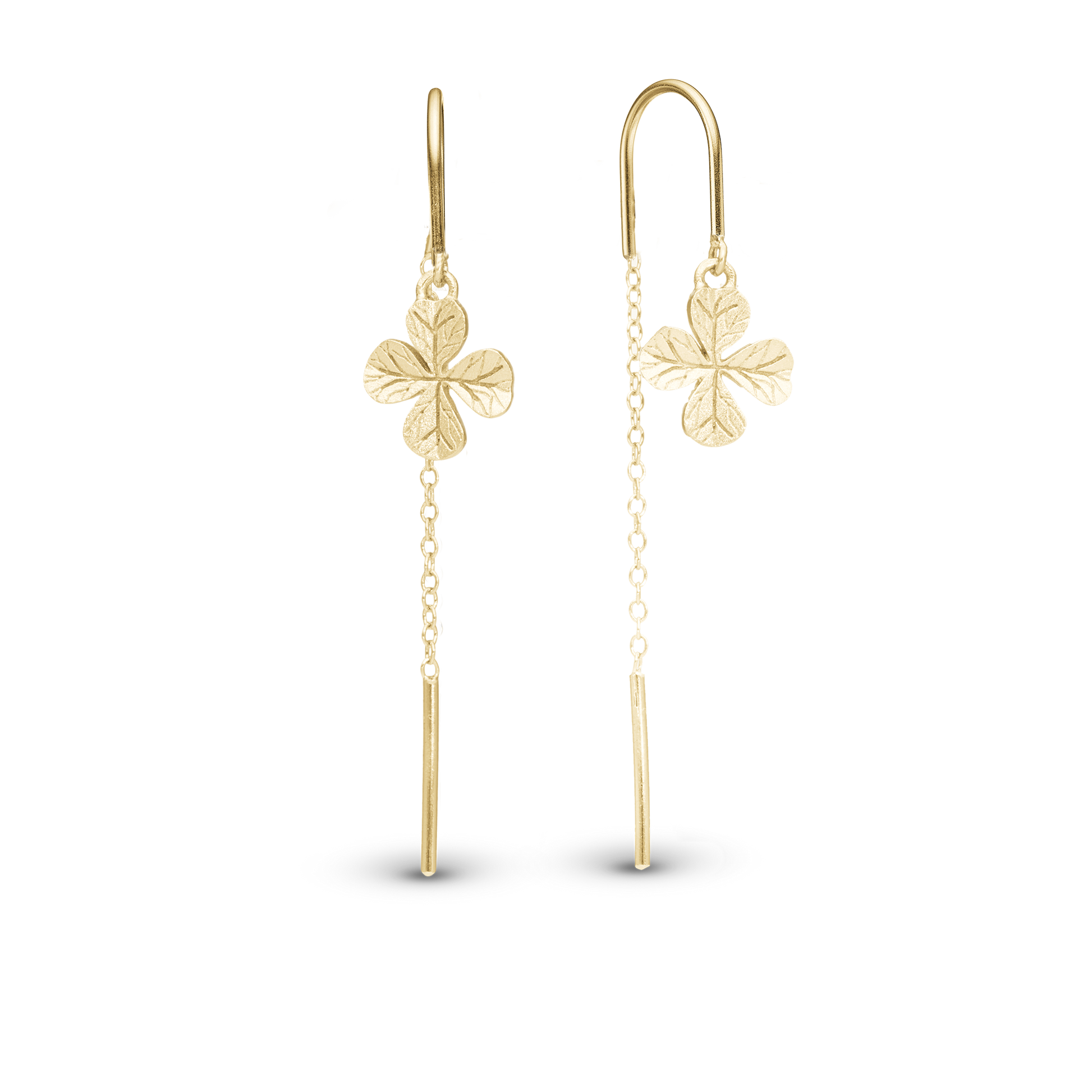 Long FoWatch Leaf Clover Dangle Earring - Brushed Gold Plated Sterling Silver