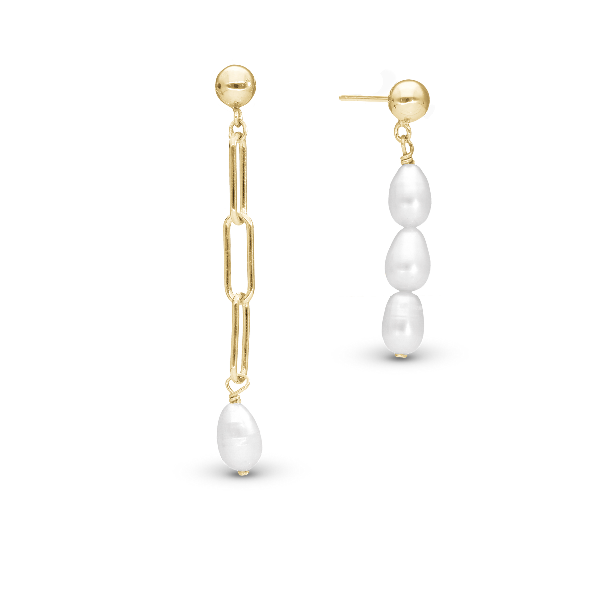 Playful Pearls Dangle Earring - Polished Gold Plated Sterling Silver with 4 white Ferskvandsperler
