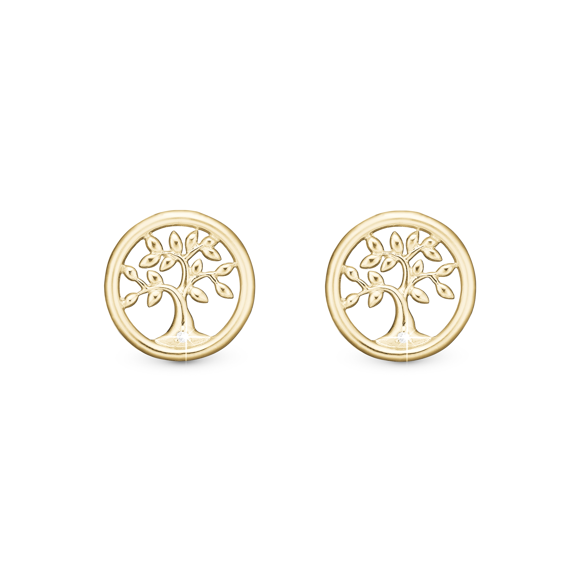 Livets Træ Diamant Stud Earrings - Gold Plated Stud Earrings - Gold Plated Sterling Silver with 2 Diamonds