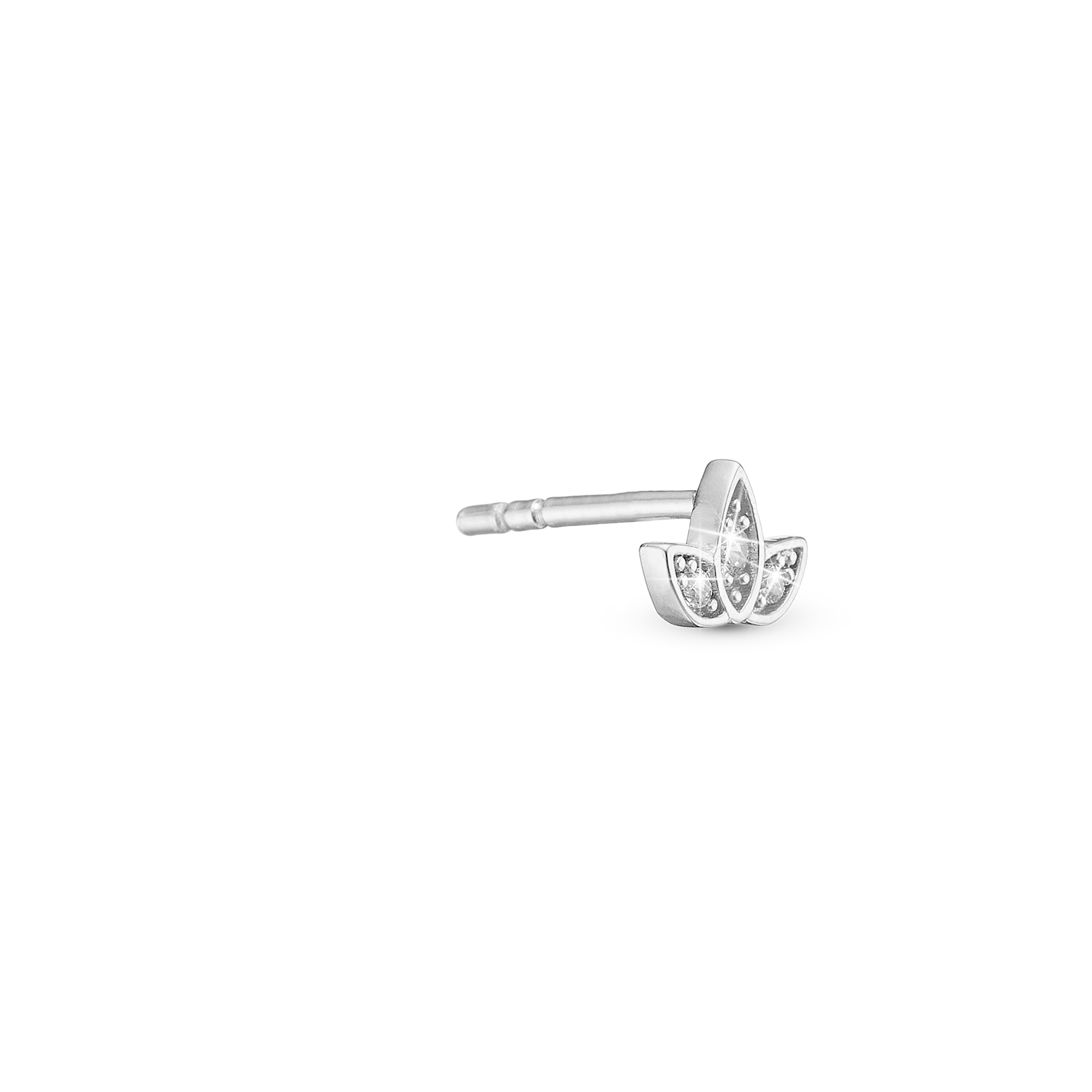 Flower Simple Earring Stud / Single Stud - Sterling Silver with 3 white Cubic Zirkonia